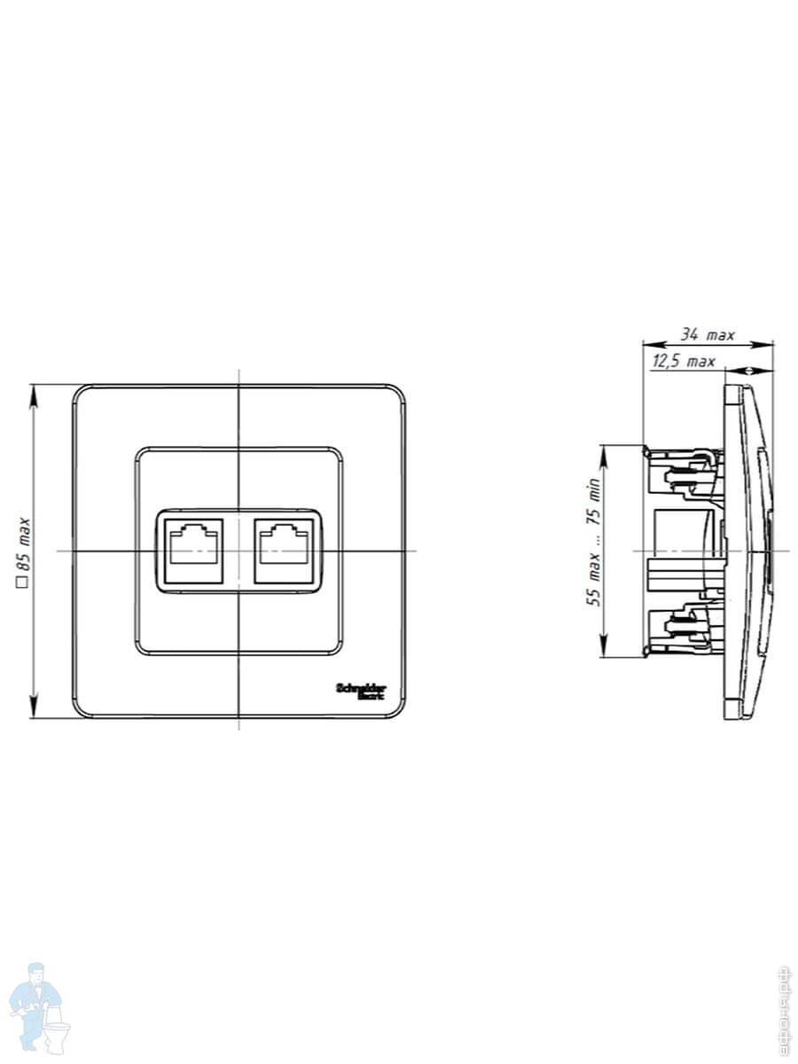 Розетка Systeme Electric BLANCA скрыт.уст. двойная без заземл. без шторок 16А 250В белый BLNRS000021Код: 281072