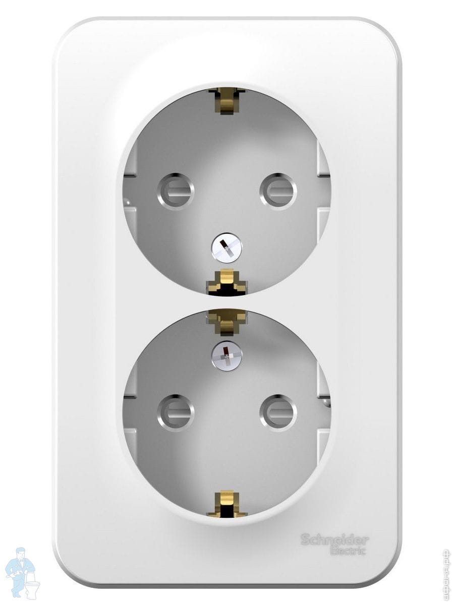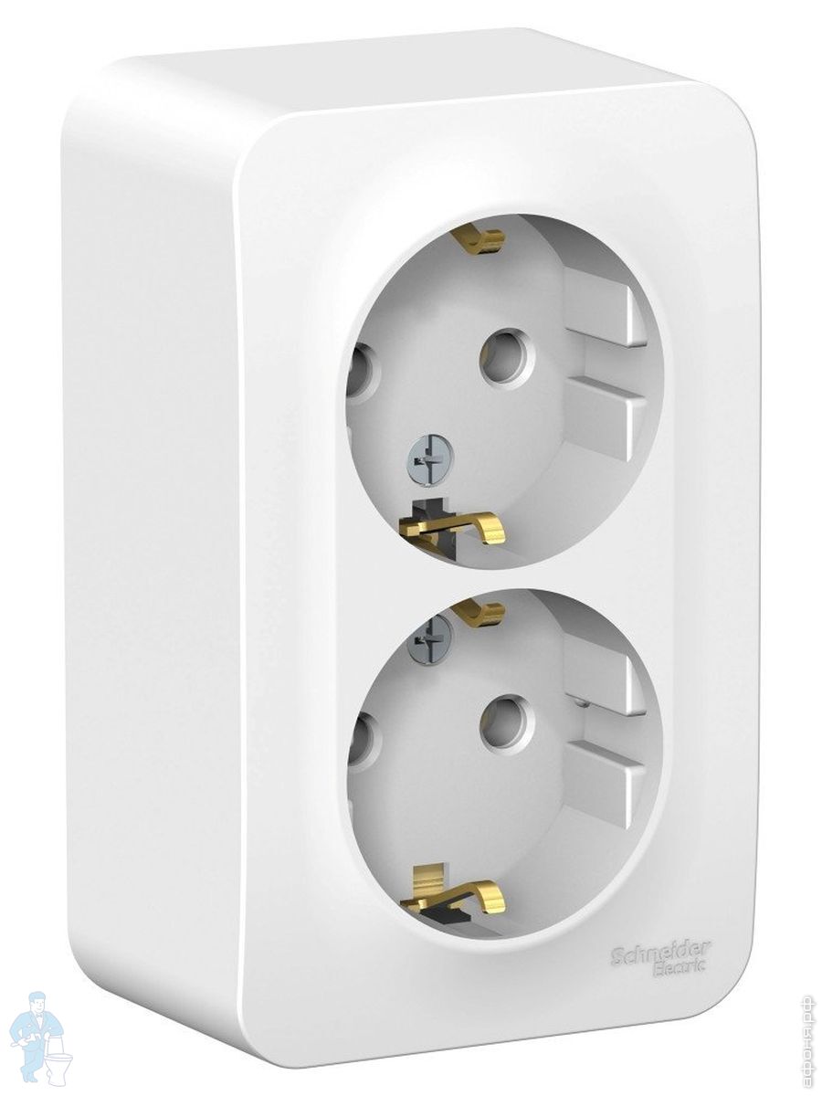 Розетка Systeme Electric BLANCA наружная двойная с заземлением изол.пл., 16А 250В, белый BLNRA010211Код: 280947