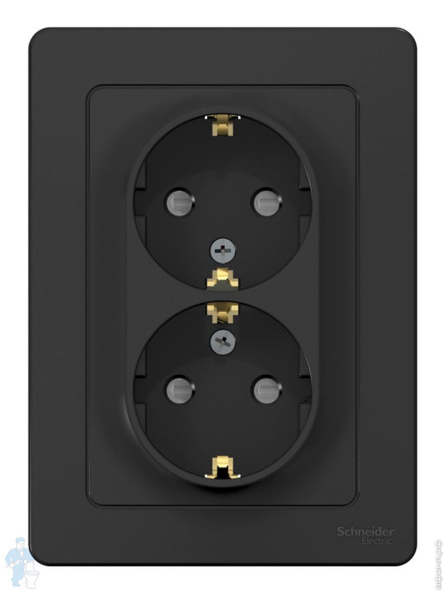 Розетка Systeme Electric BLANCA двойная, с заземлением, со шторками, 16А, 250В, антрацит BLNRA011216Код: 281351