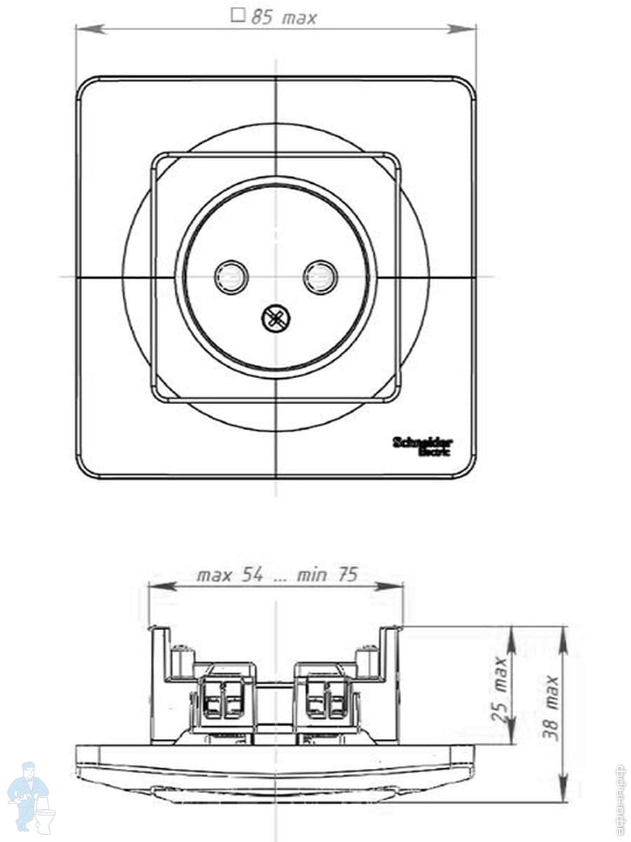 Розетка Systeme Electric BLANCA скрыт.уст. двойная без заземл. без шторок 16А 250В антр. BLNRS000026Код: 281071