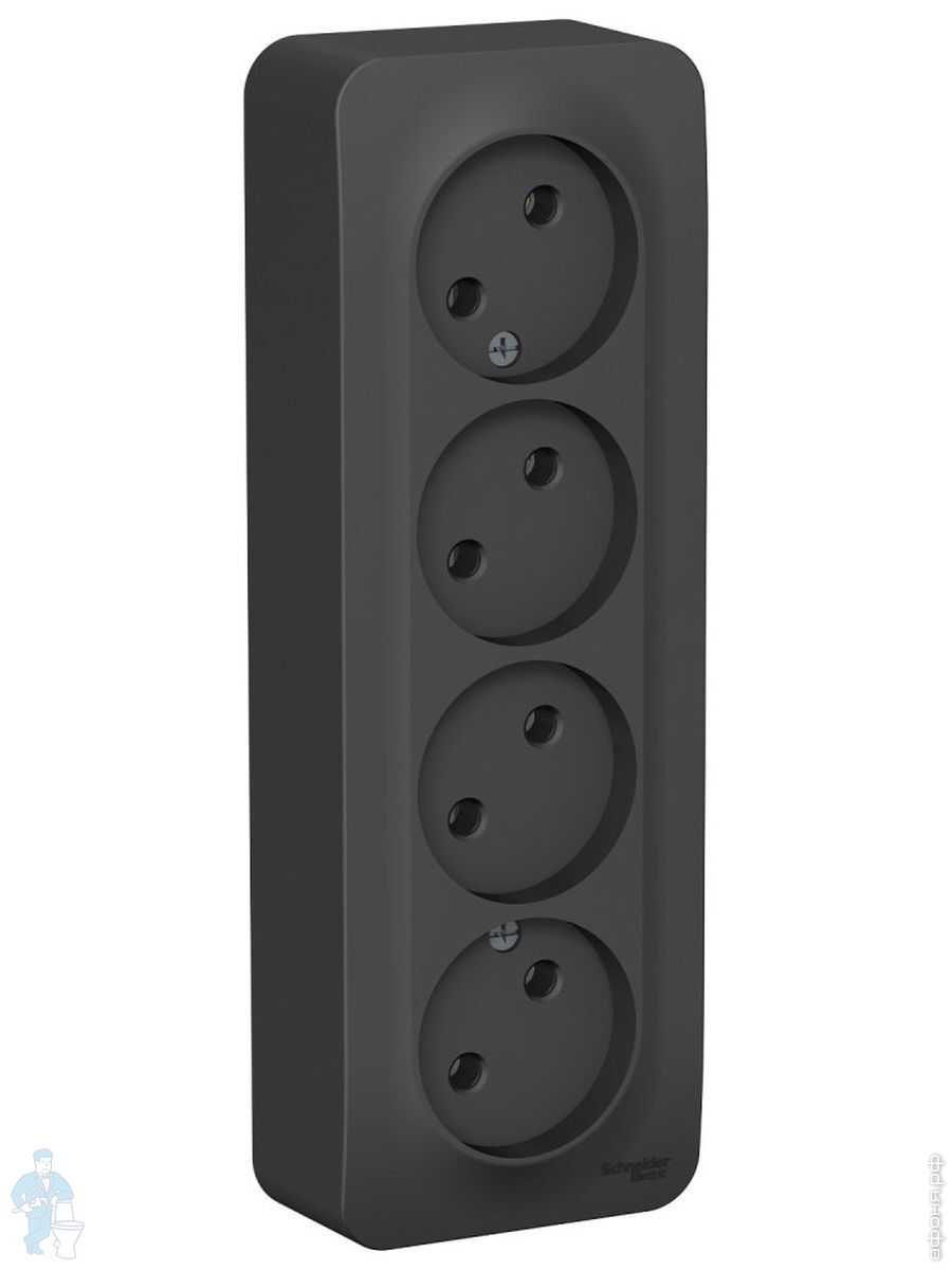 Розетка Systeme Electric BLANCA 4-я с заземл. со шторками с изол.пласт. 16А 250В антрац. BLNRA011416Код: 281320