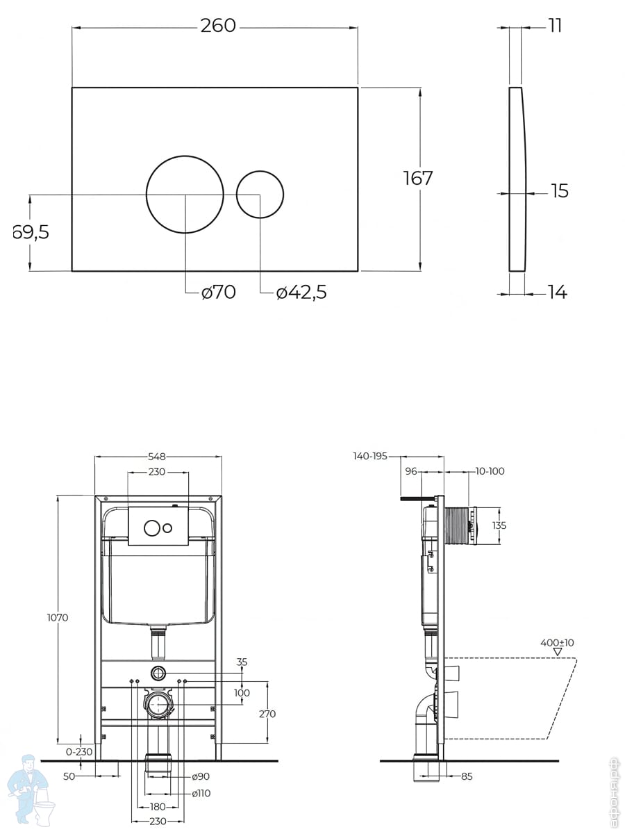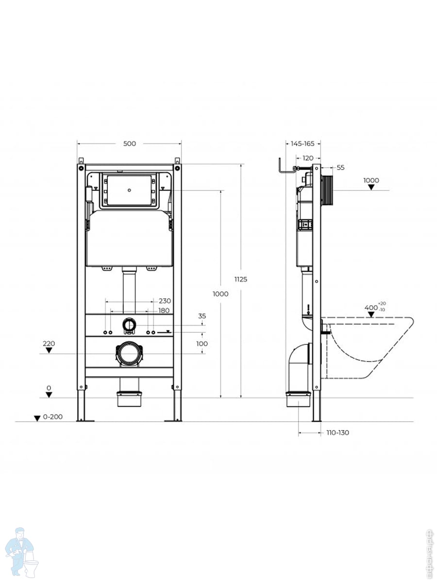 Инсталляция BelBagno 30 для подвесного унитаза 1150х300х187мм, фронт. управление, крепления BB003-30Код: 214313