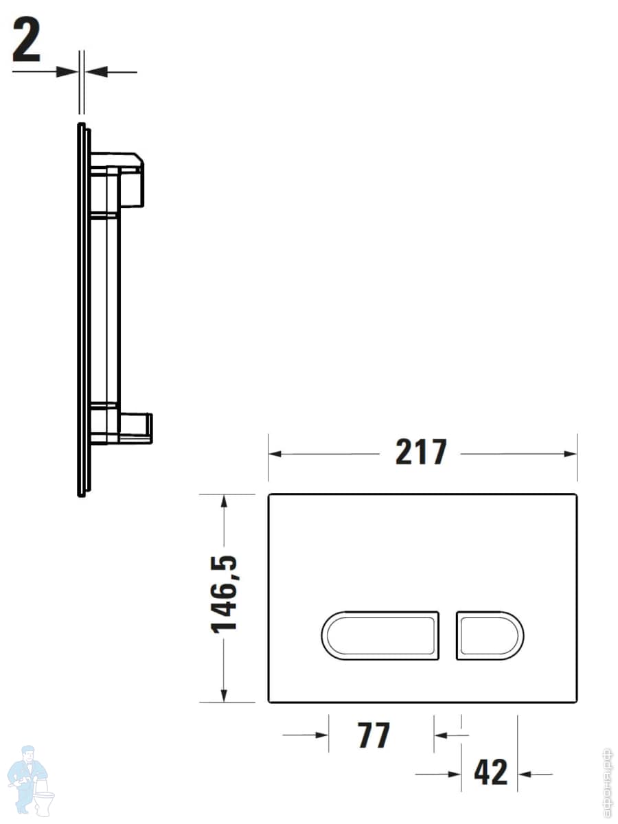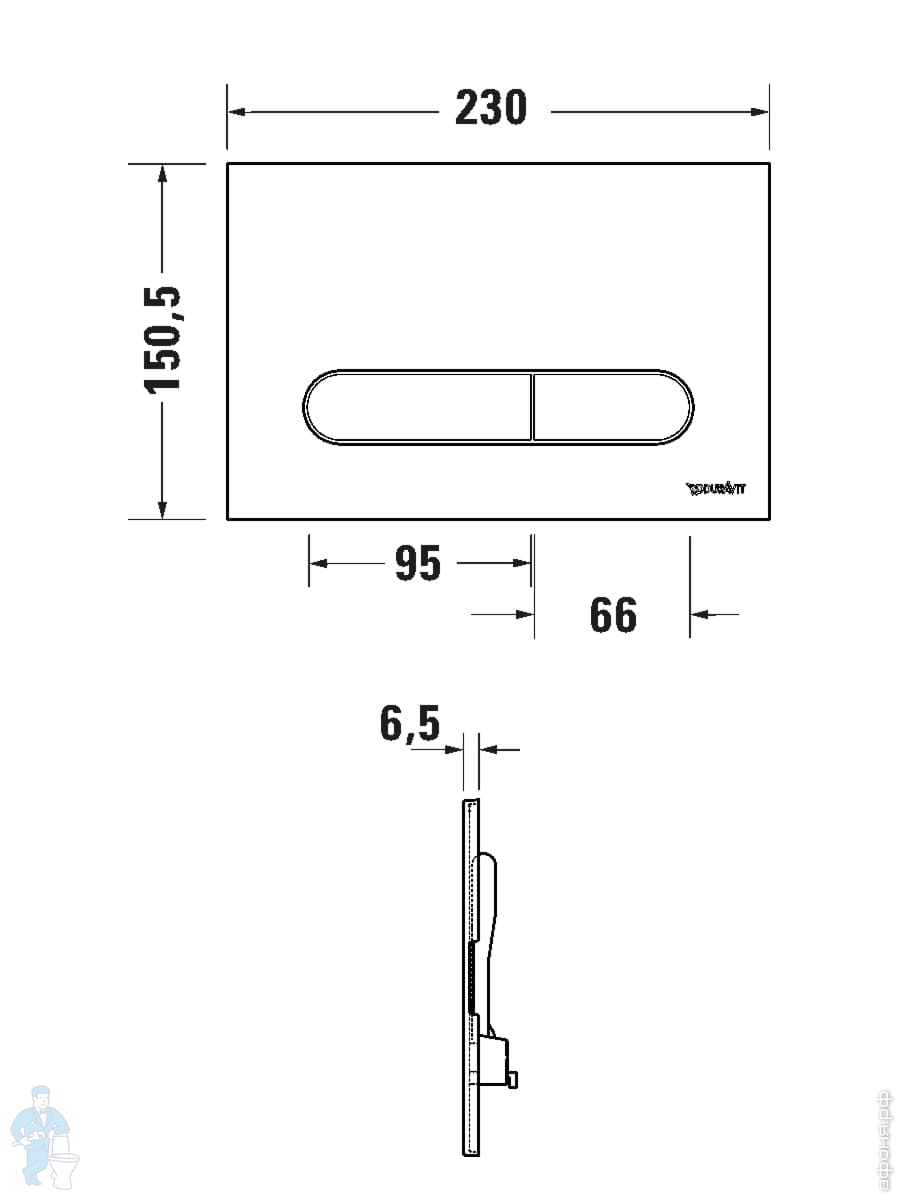 Клавиша смыва Duravit Beta 100 двойной смыв, пластик, цвет: черный матовый WD5009031000/WF5100131010Код: 348332