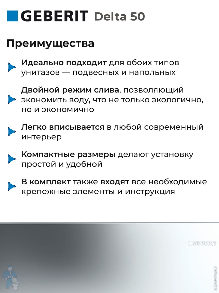 GEBERIT Delta 50 Клавиша смыва, двойной смыв, пластик, хром глянцевый (для UP172,UP182) 115.135.21.1Код: 8491
