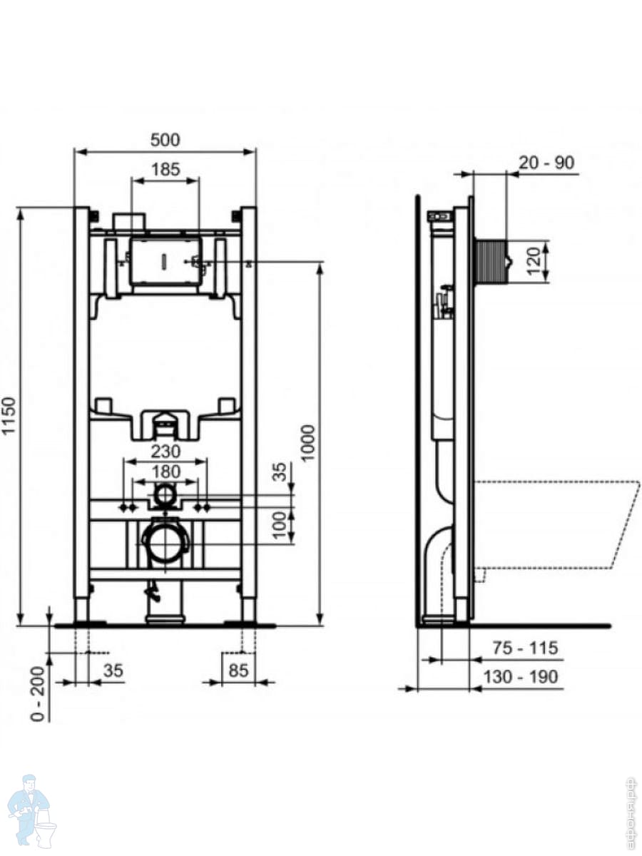 Инсталляция Ideal Standard PROSYS для писсуара с задней подводкой и встр смывного устройства R016367Код: 181620