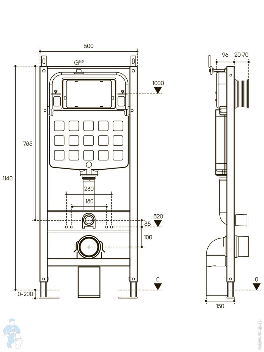 Инсталляция Aqueduto TECNICA NOVO+унитаз с сиденьем MACIO PLUS+клавиша смыва RETANGULO NOVO AQDS221ТКод: 350008