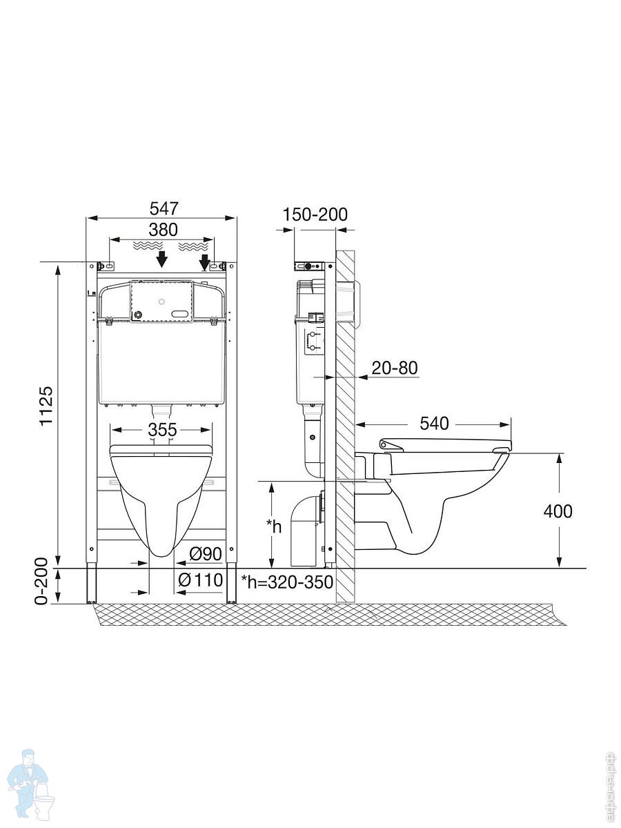 - бачок покрыт антишумовым и противоконденсатным составом;