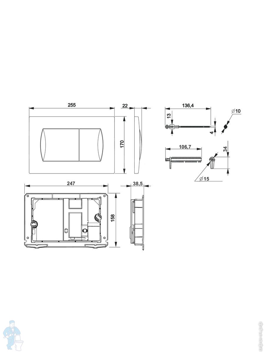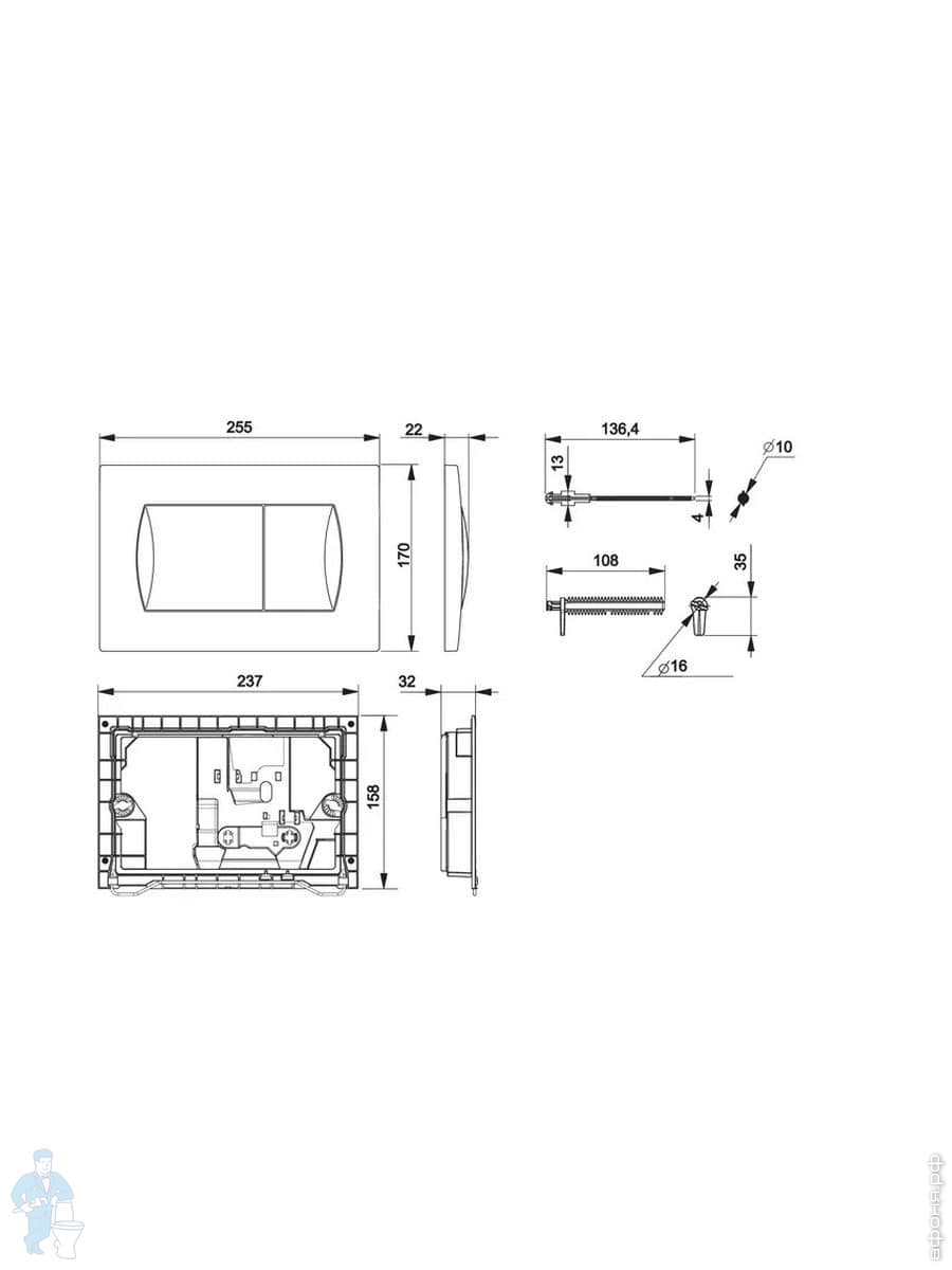 - качественная арматура с механизмом двойного смыва 3/6л;