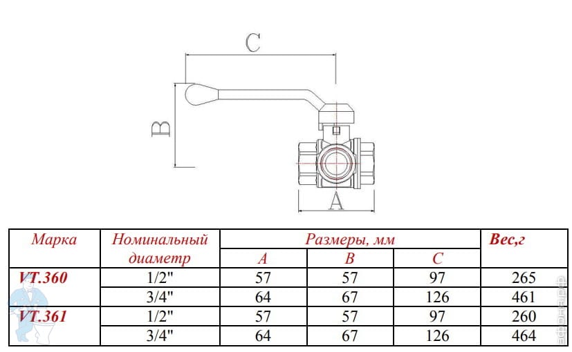 Краны трехходовые VALTEC