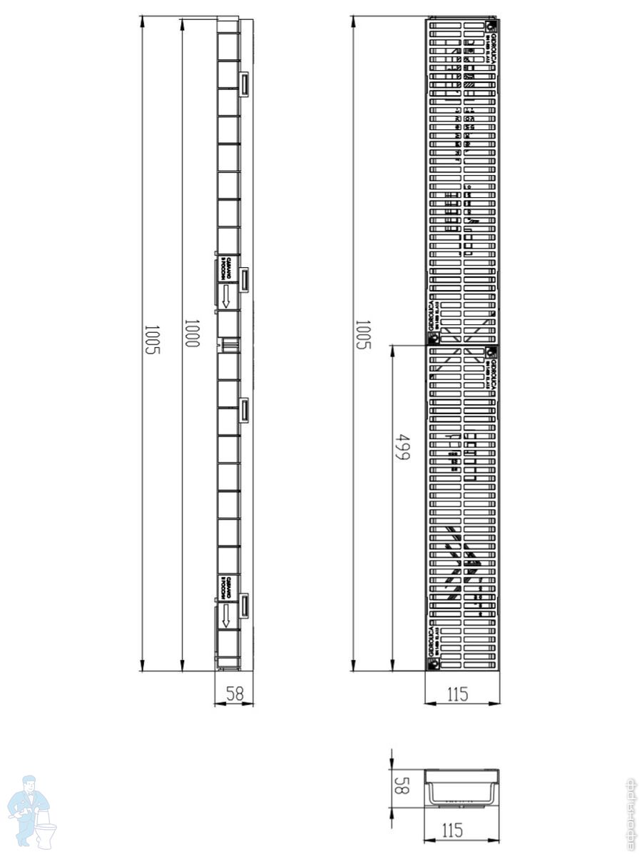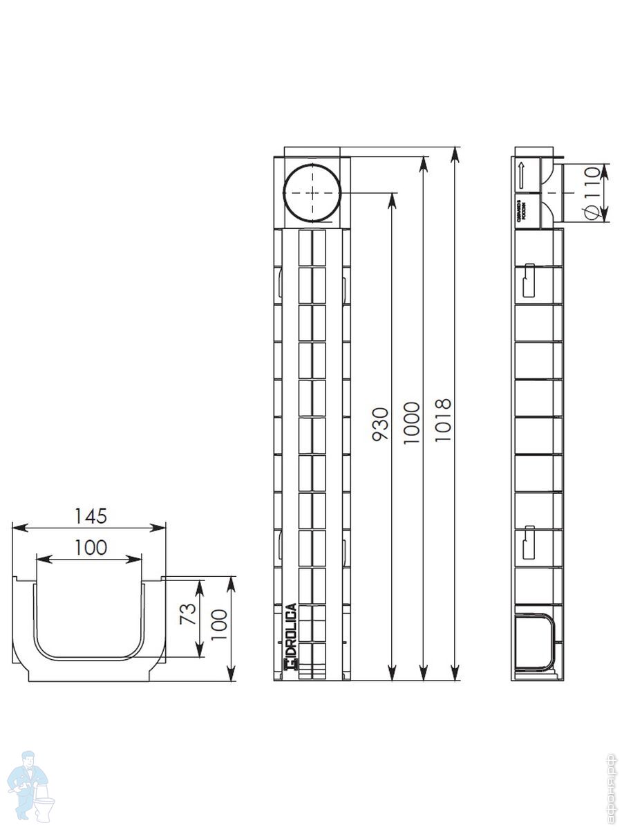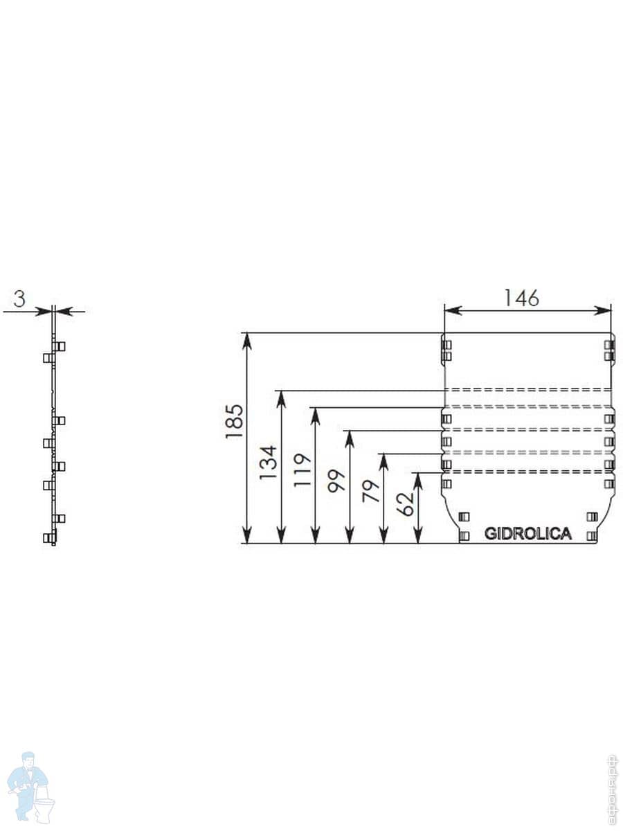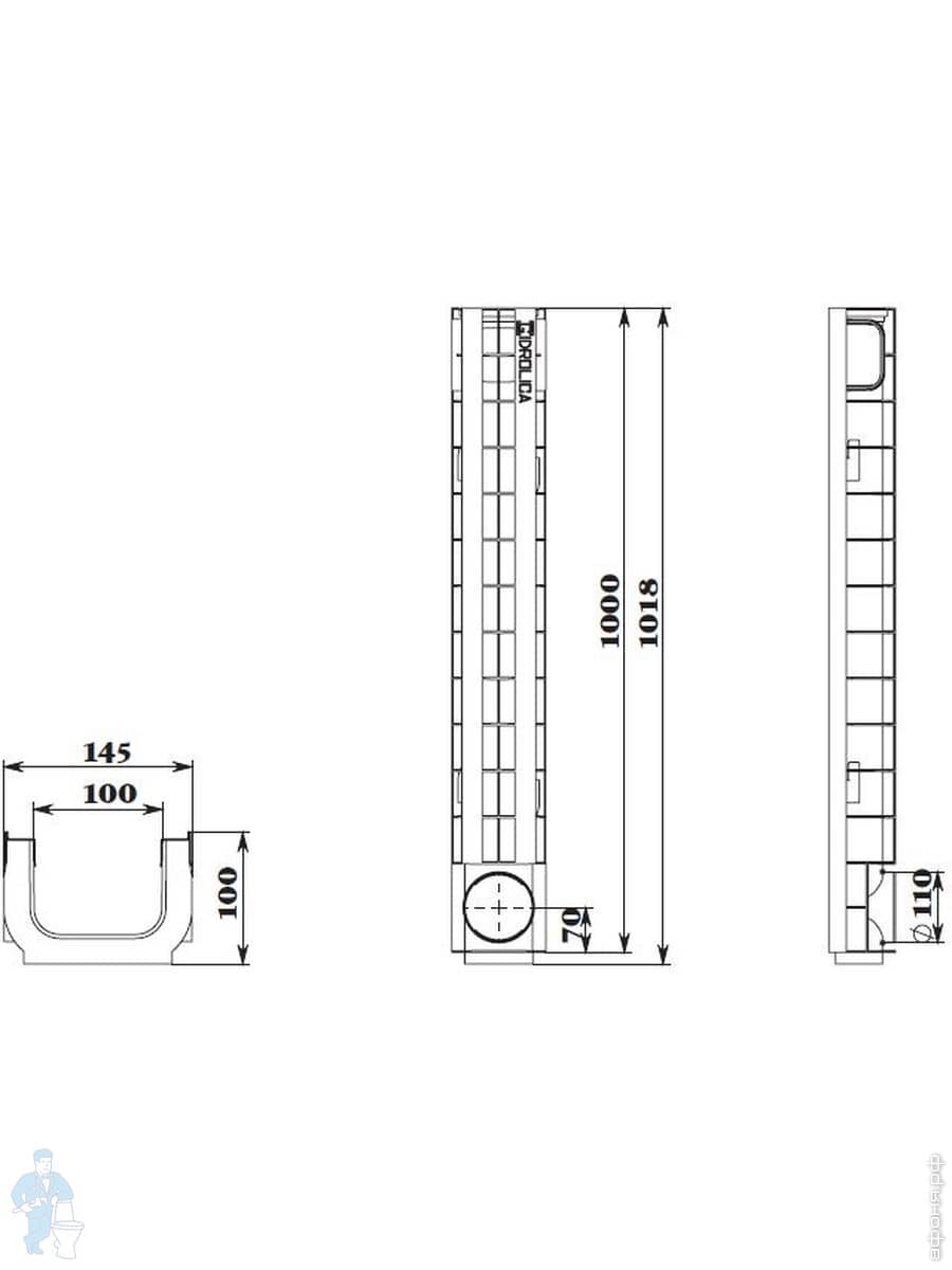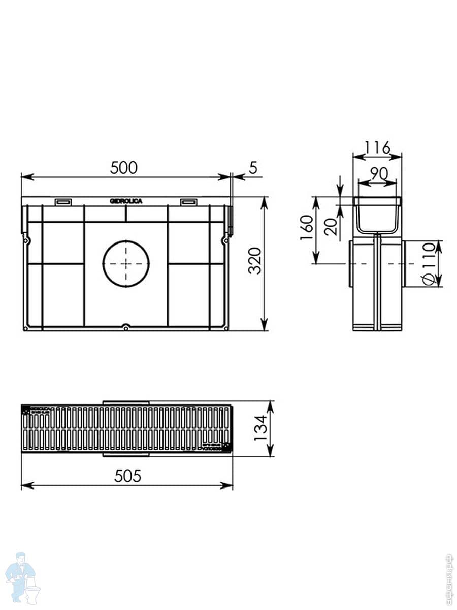 Линейный водоотвод Gidrolica для класса нагрузки A 15, B 125, C 250, душевые лотки, трапы, сифоны для душевых кабин