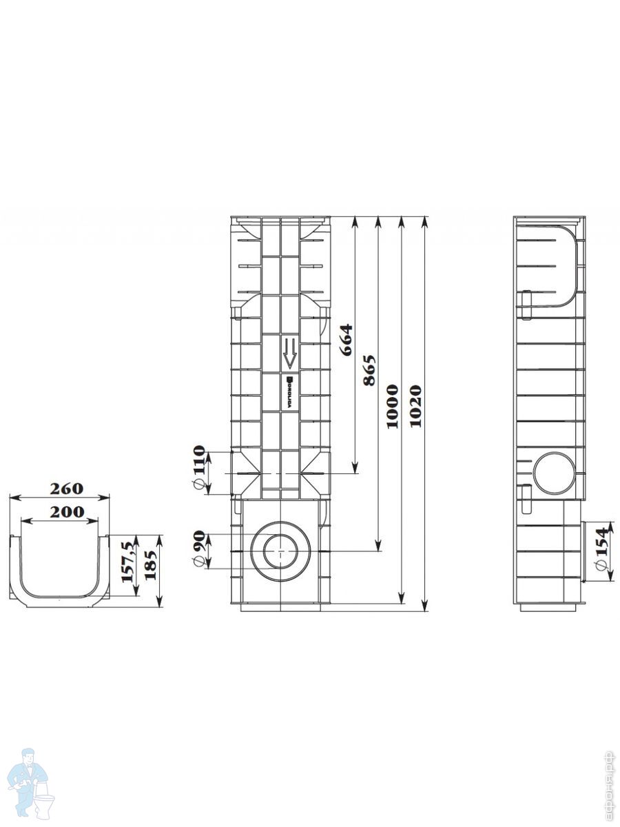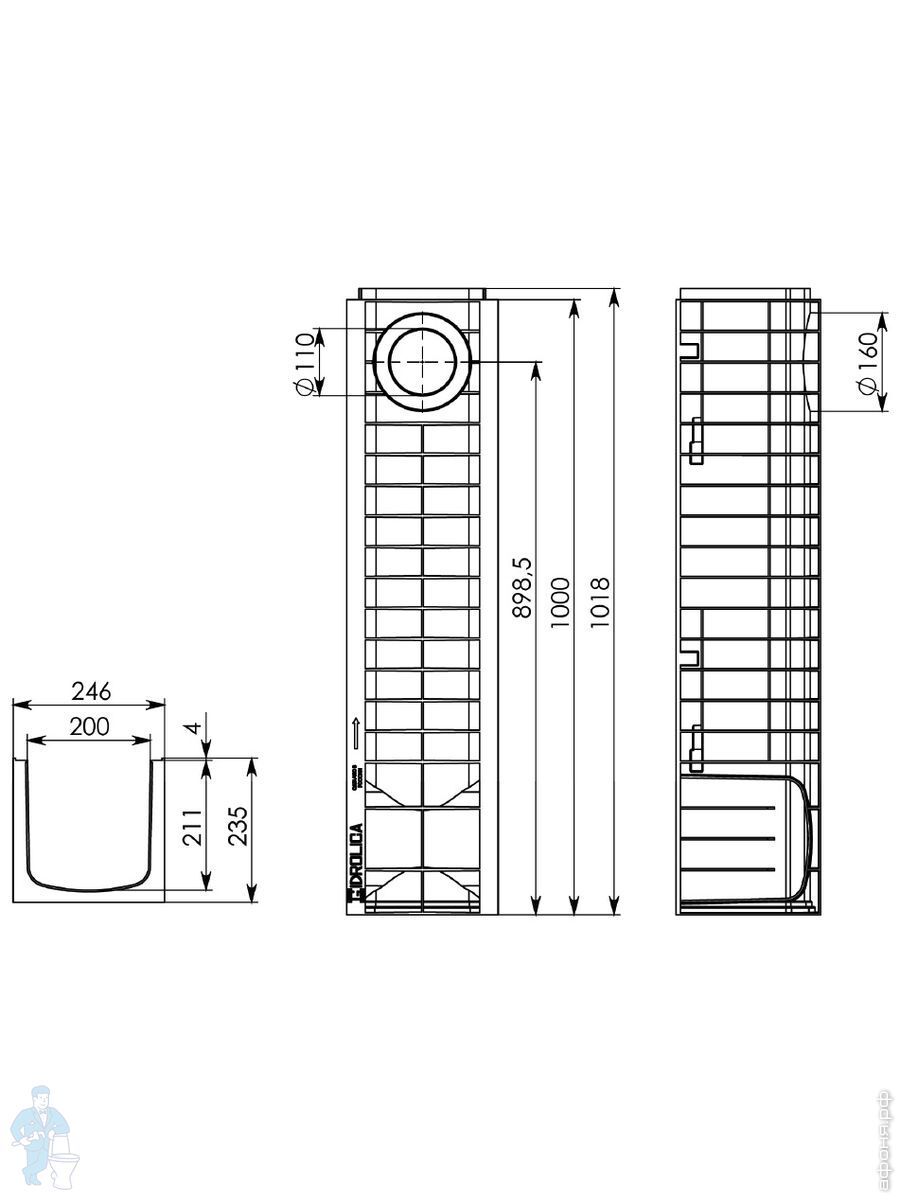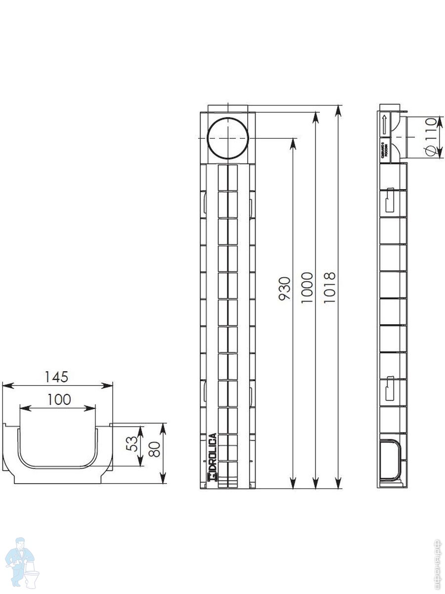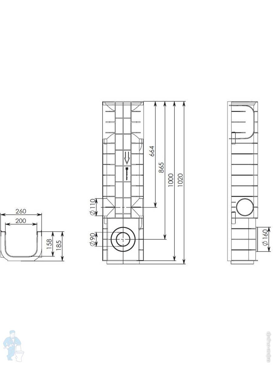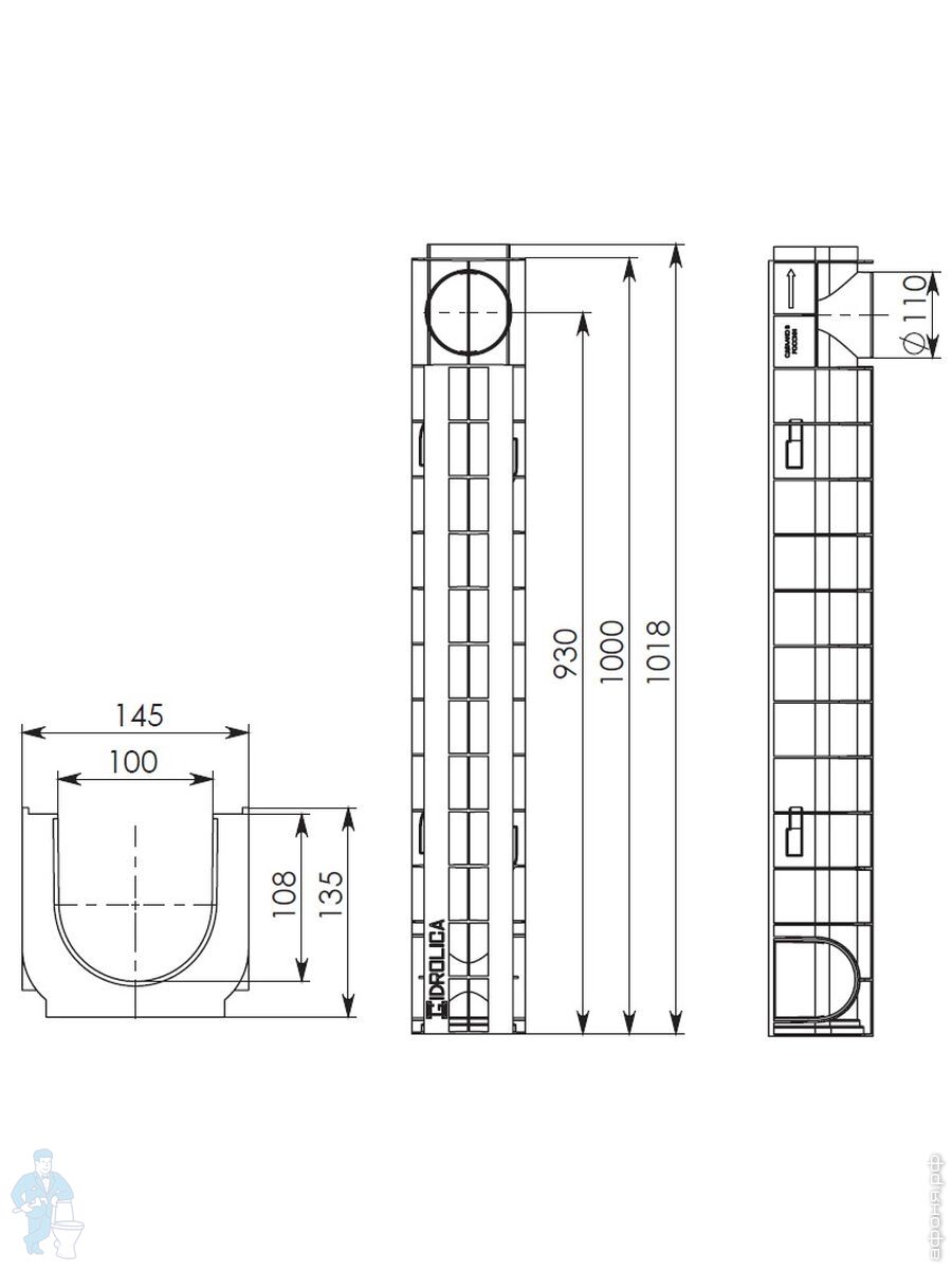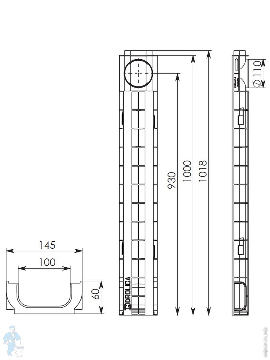 Линейный водоотвод Gidrolica для класса нагрузки A 15, B 125, C 250, душевые лотки, трапы, сифоны для душевых кабин