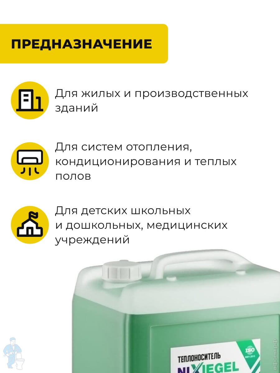 Сеть магазинов сантехники «Афоня» предлагает вашему вниманию широкий выбор ассортимента из важнейшего элемента любой инженерной системы отопления – теплоносителя. Не нужно недооценивать его важность, ведь именно качество и правильная эксплуатация теплоносителя прямо влияют на общий срок службы всей отопительной системы, которую представляют: котел, трубы, насосы, радиаторы.
