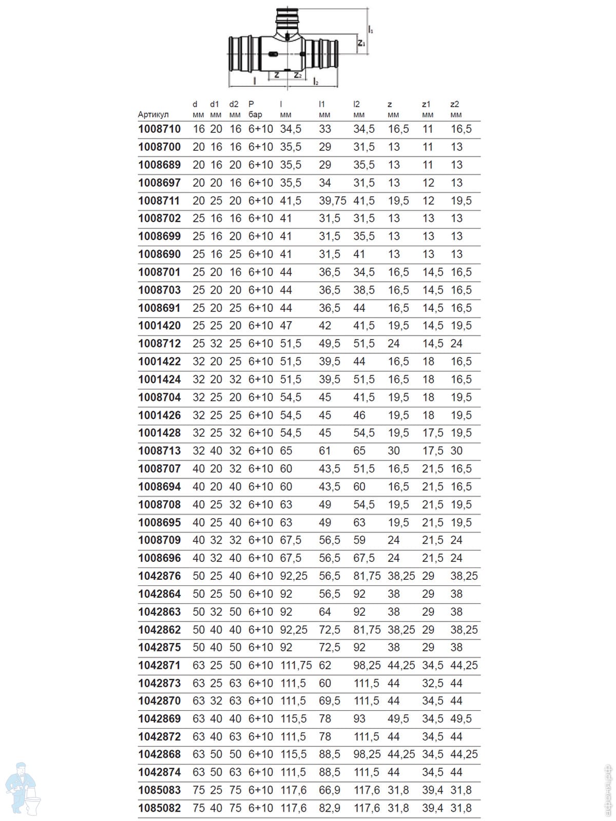 Диаметр: 25/20мм