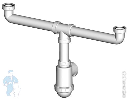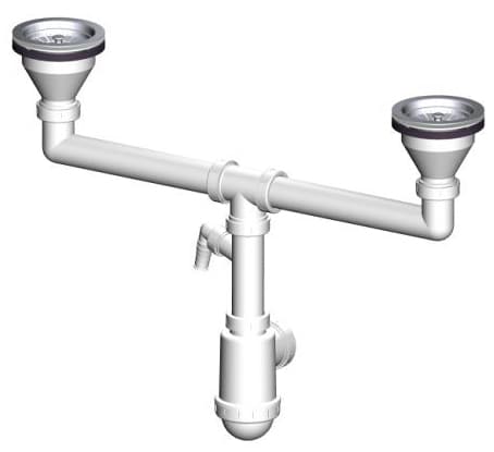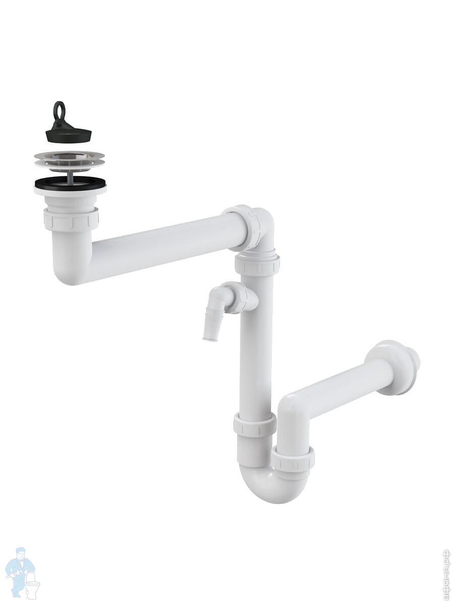 Сифон для двойной мойки с Alcaplast A453P нерж. решётками D115, с отводом для стир. машины,вых.50/40Код: 18737