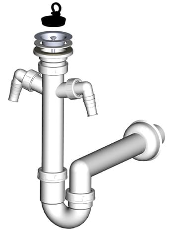 Сифон для двойной мойки Alcaplast A454P с нерж. решётками D115, с отводом для стир.машины, вых.50/40Код: 18738