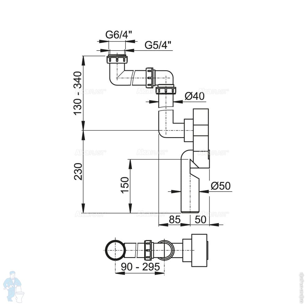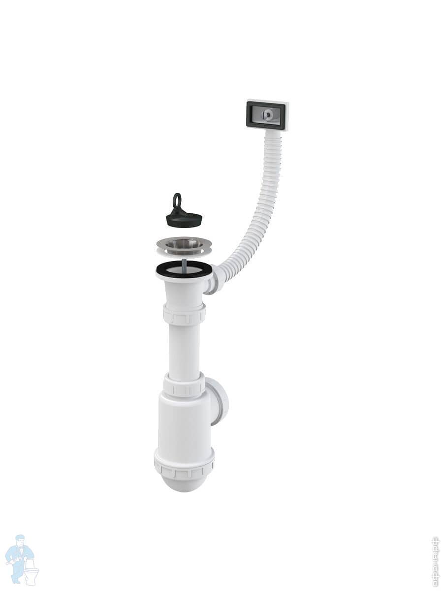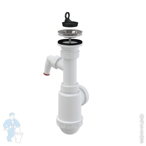 Сифон для мойки Alcaplast A444P с нерж. решёткой D70, гофропереливом и отводом д/стир.машины D-50/40Код: 18728