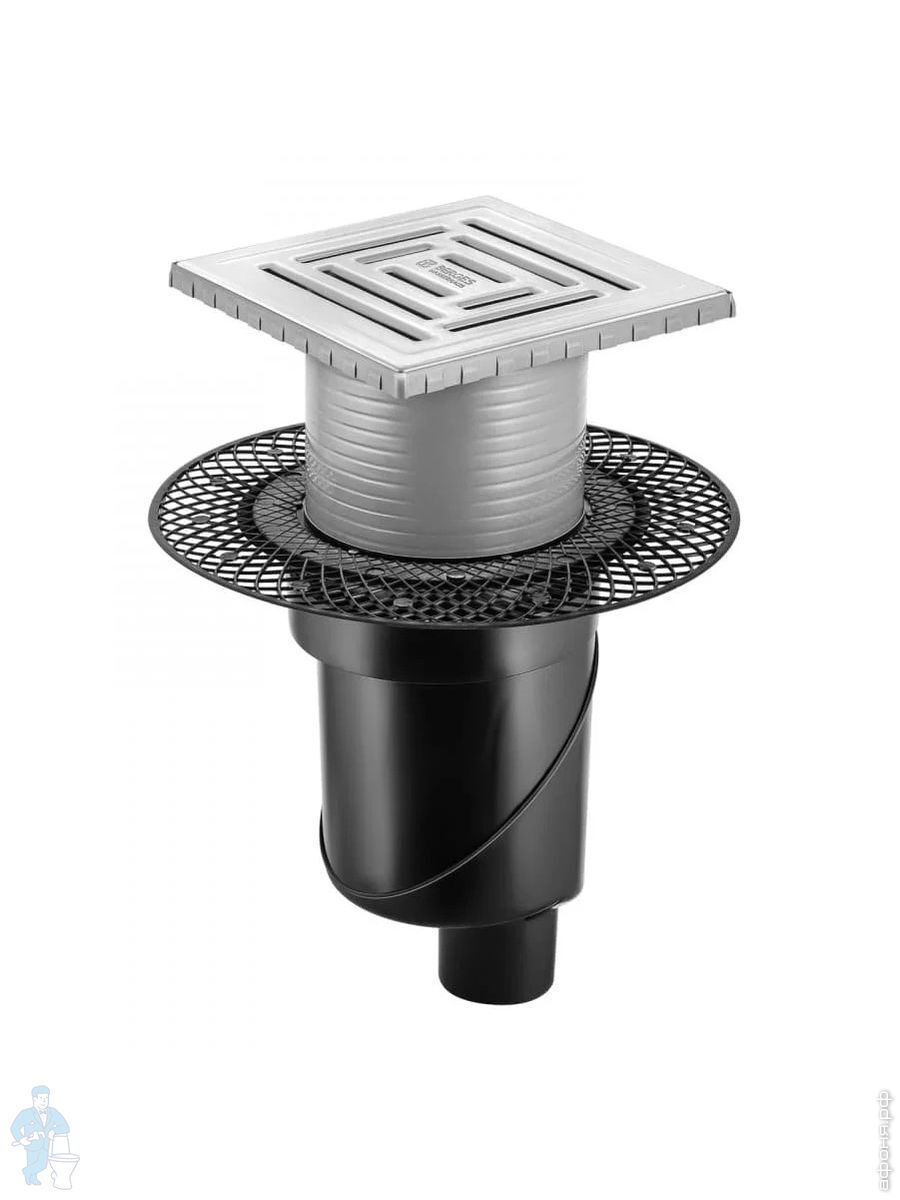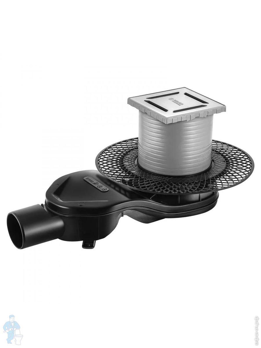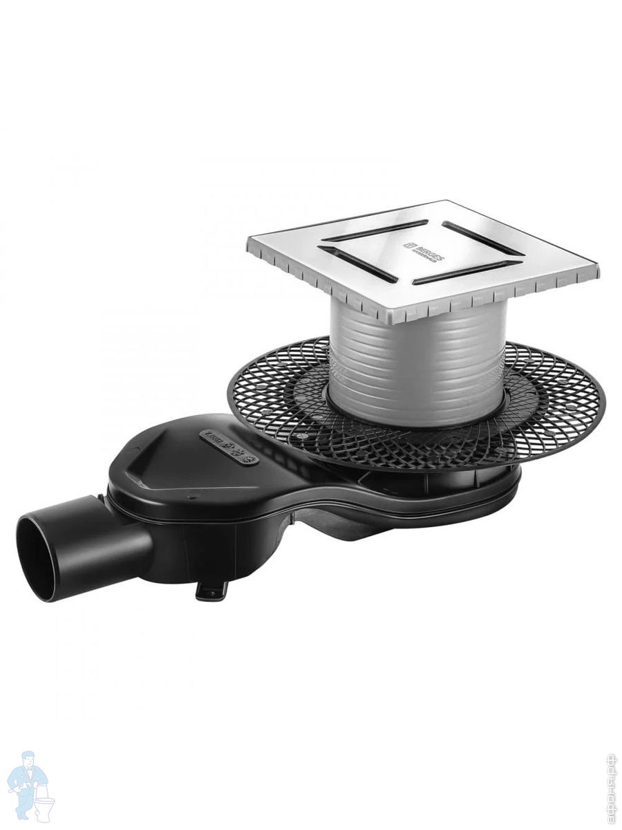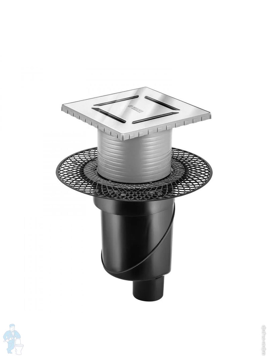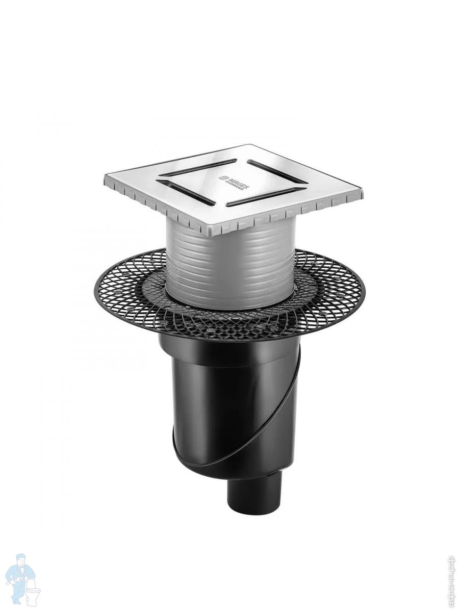 Трап душевой BERGES PLATZ Norma 150х150, хр. глянец, верт. выпуск S-сифон D50/105мм Н30/80мм, 091059Код: 259254