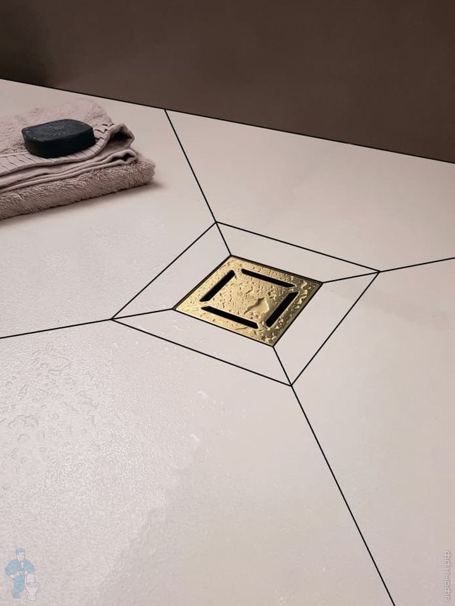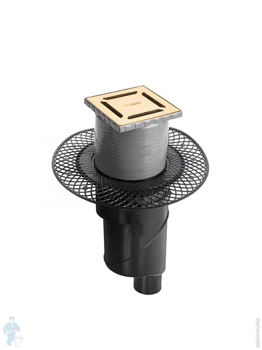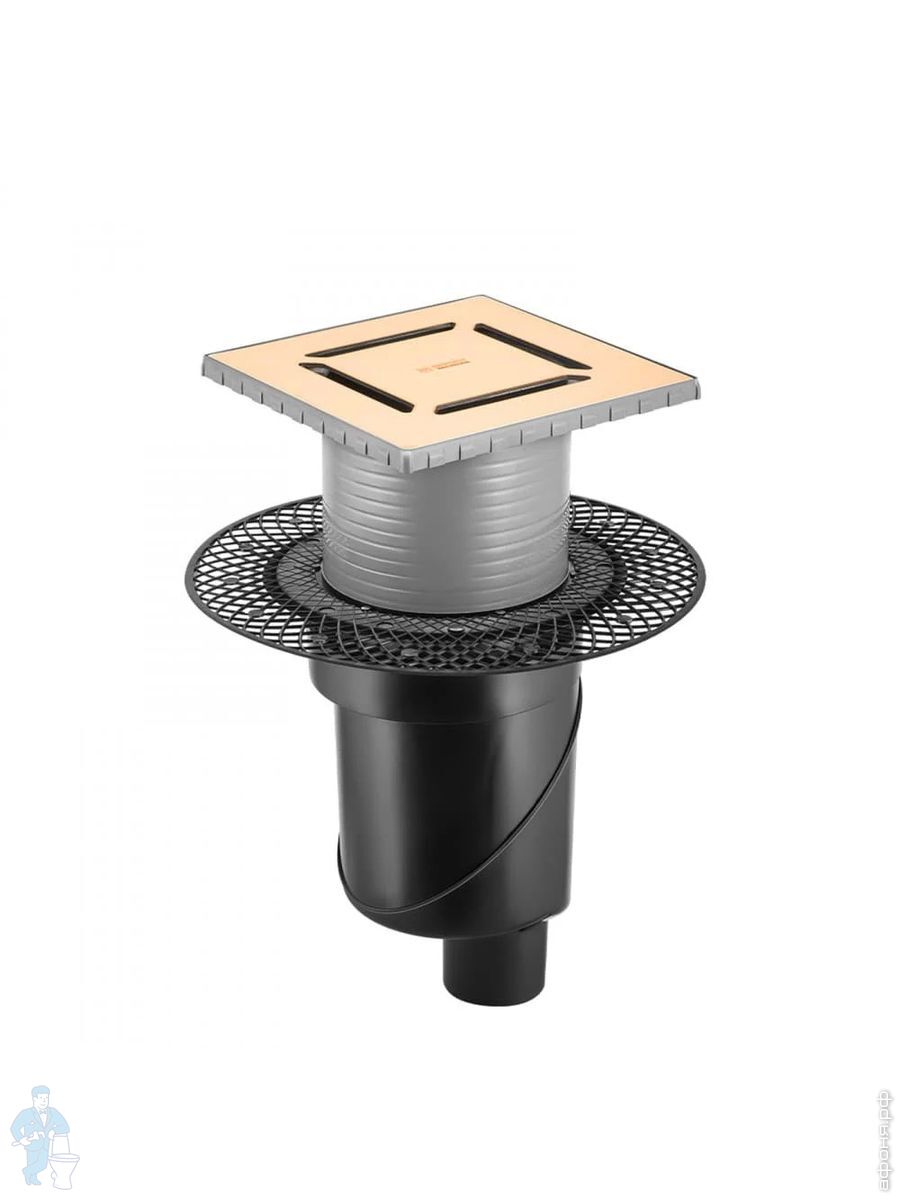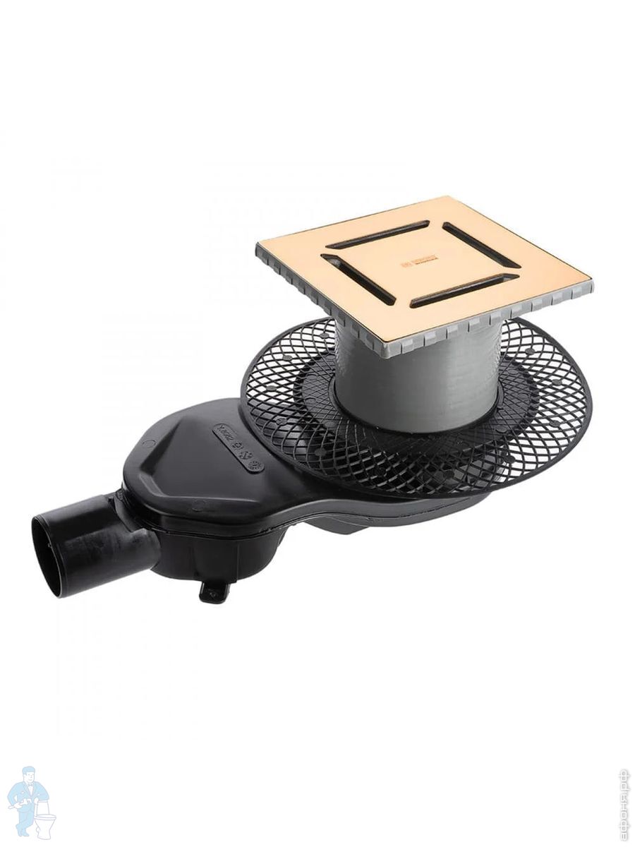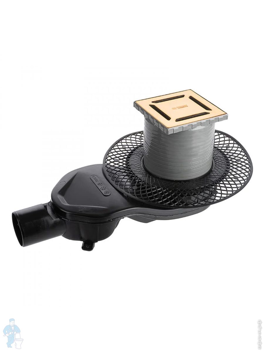 Трап душевой BERGES PLATZ Norma 150х150, золот. гл., верт. выпуск S-сифон D50/105мм Н30/80мм, 092059Код: 259256
