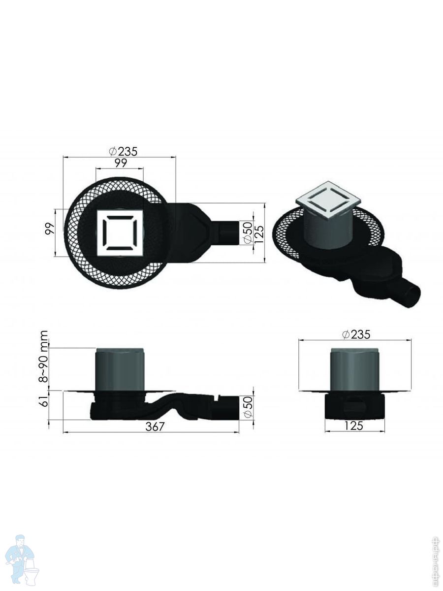 Серия Platz (душевые трапы), душевые лотки, трапы, сифоны для душевых кабин