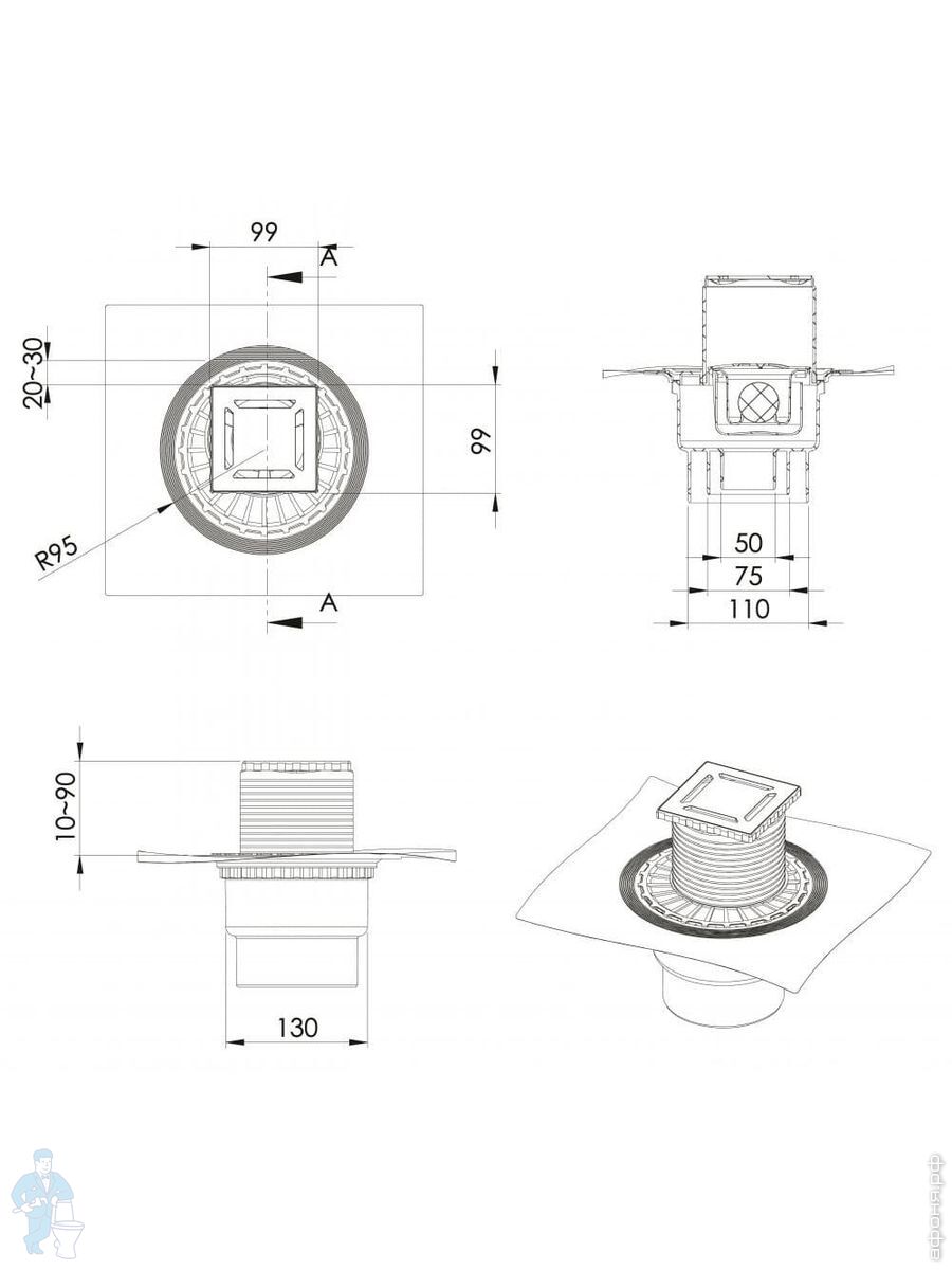 Серия Zentrum (душевые трапы), душевые лотки, трапы, сифоны для душевых кабин