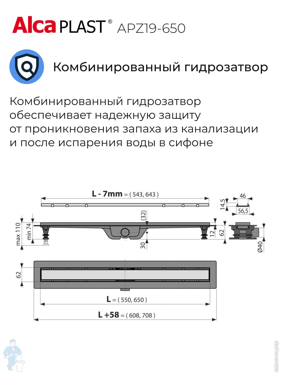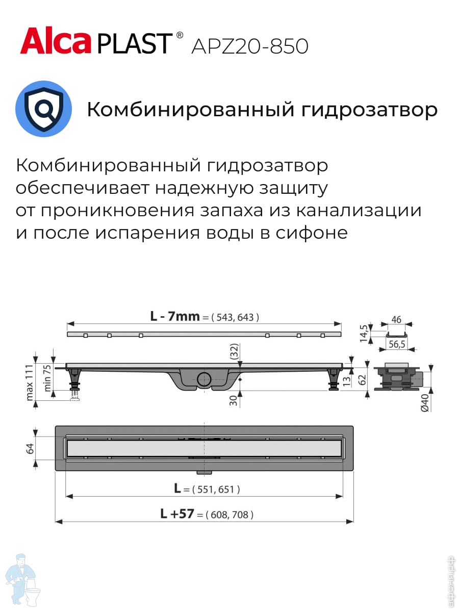 Alcaplast APZ19 для двусторонней решетки, душевые лотки, трапы, сифоны для душевых кабин