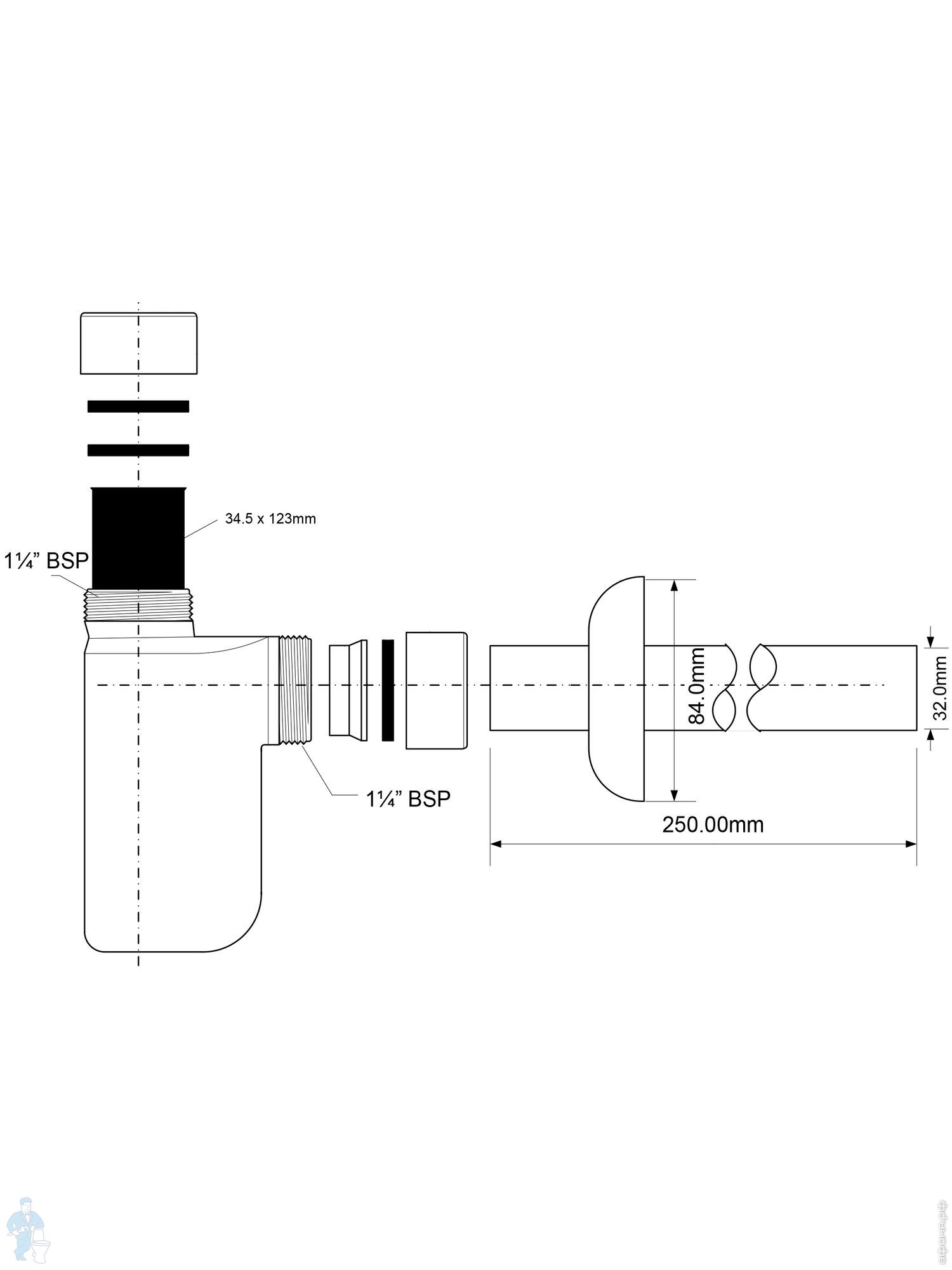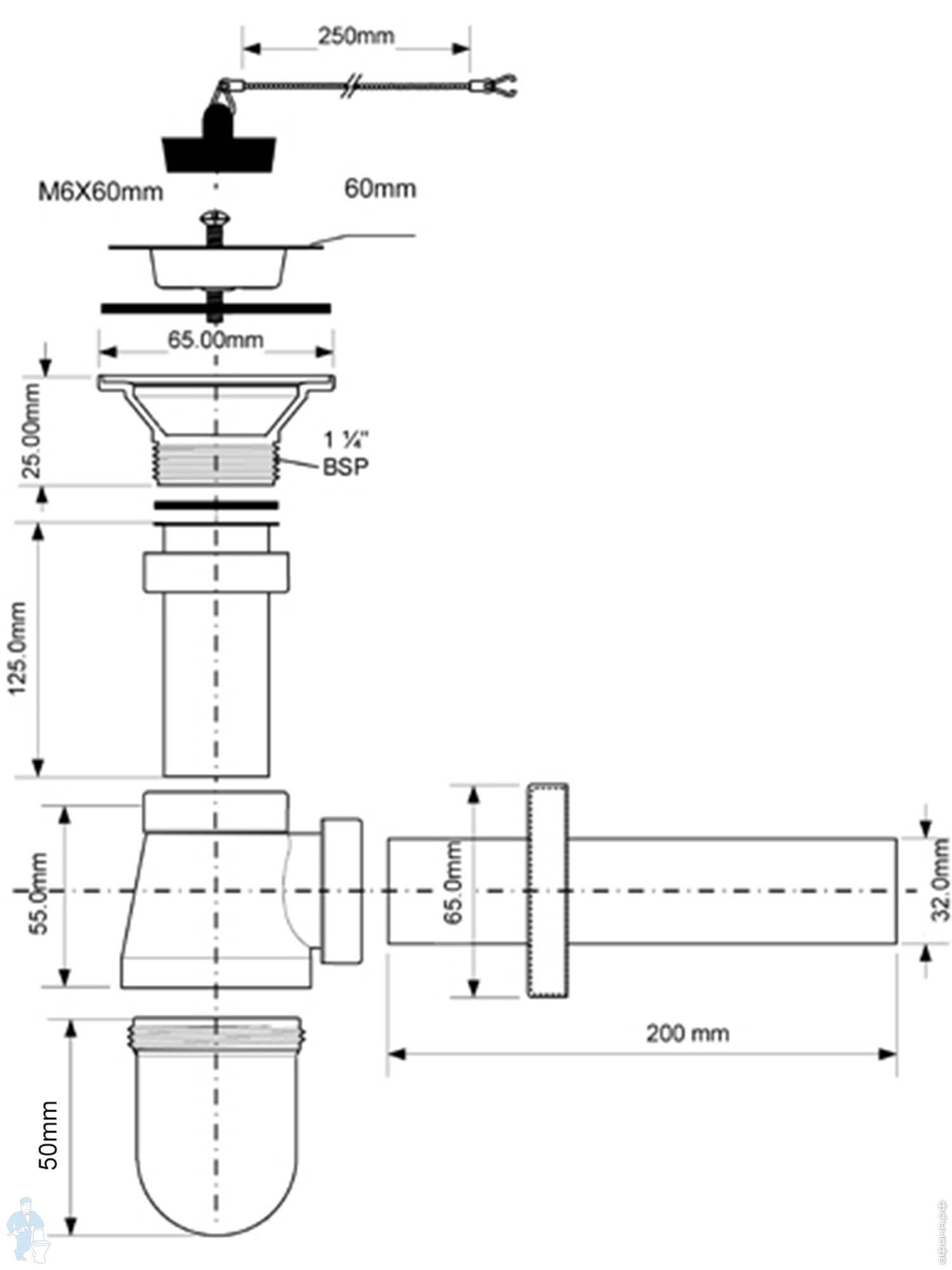 Сифон бутылочный латунный McAlpine (1 1/4"х32мм) отвод D32мм, отражатель, никель сатиновый CA32EU-SNКод: 14204