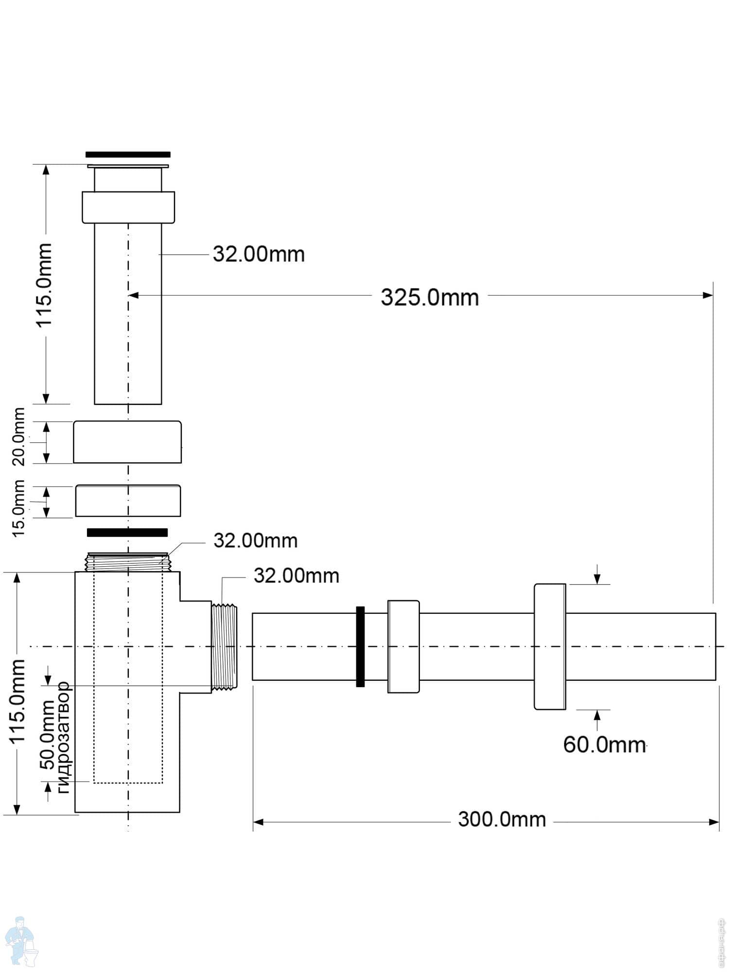 Сифон прямоугольный латунный McAlpine (1 1/4"х32мм) отвод D32мм, отражатель,антич.бронза CA32SQEU-ABКод: 14209