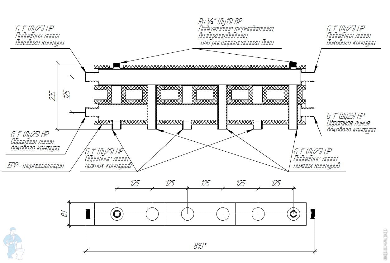 Модульный коллектор Gidruss MKSS-100-2.EPP до 100 кВт, 2 магистрали 1 1/4", 2 контура, EPP-термоизолКод: 278729