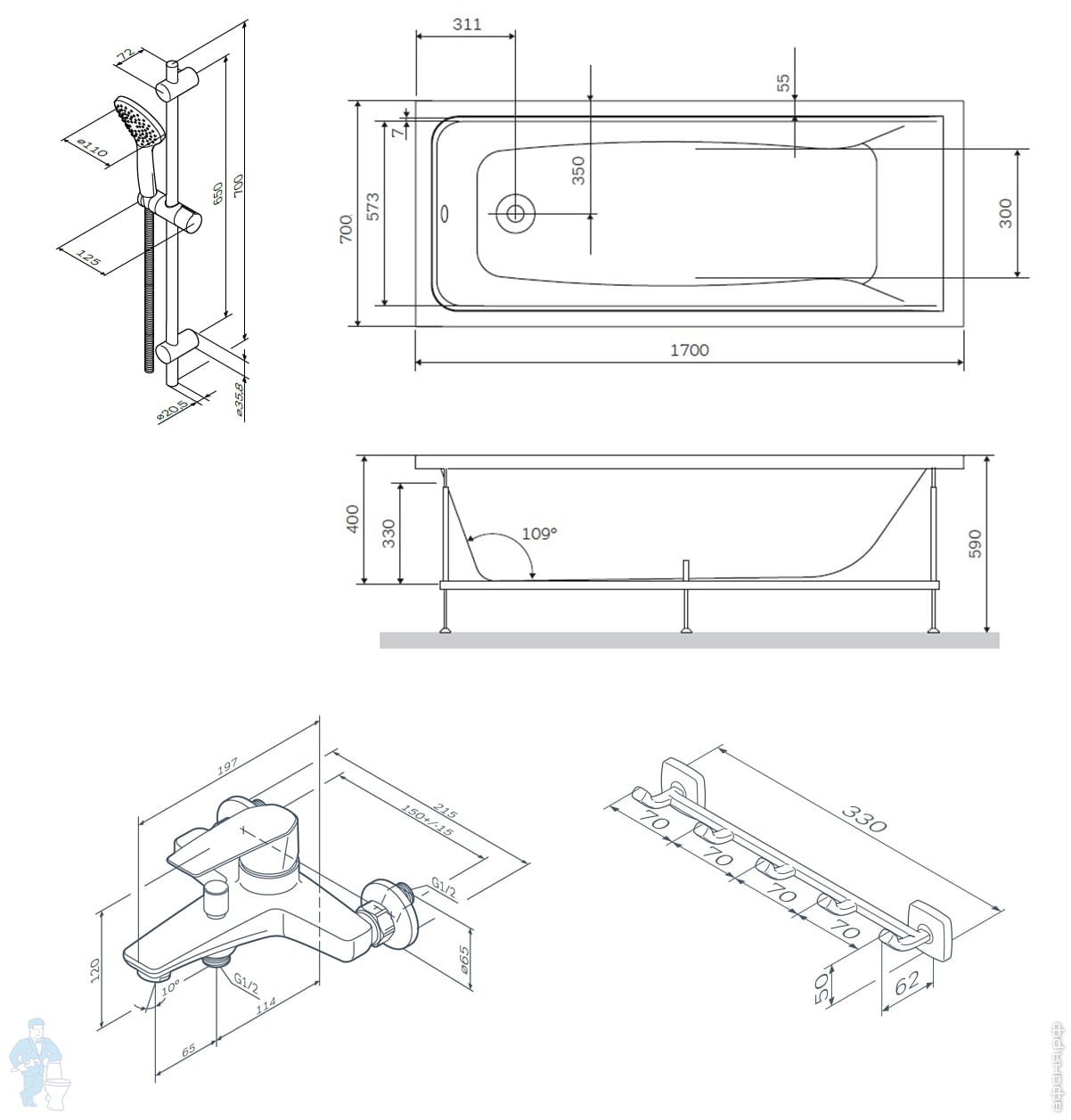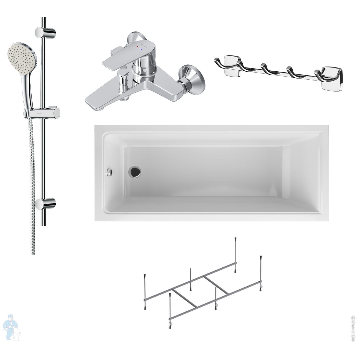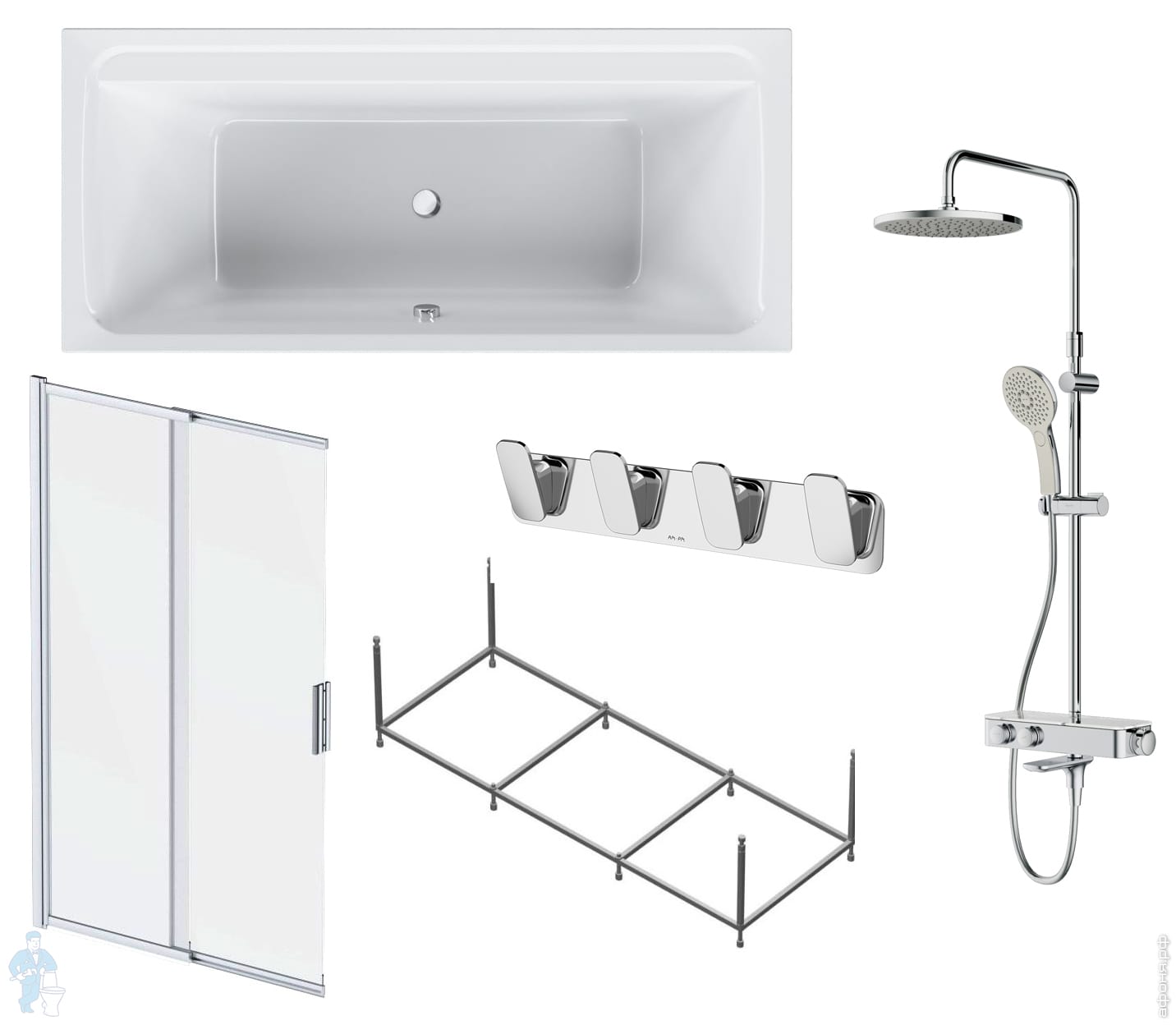 Комплект AM.PM Inspire 2.0 WK52EB Ванна 180х80, шторка стекло, душевая система термостат, аксессуарыКод: 200873