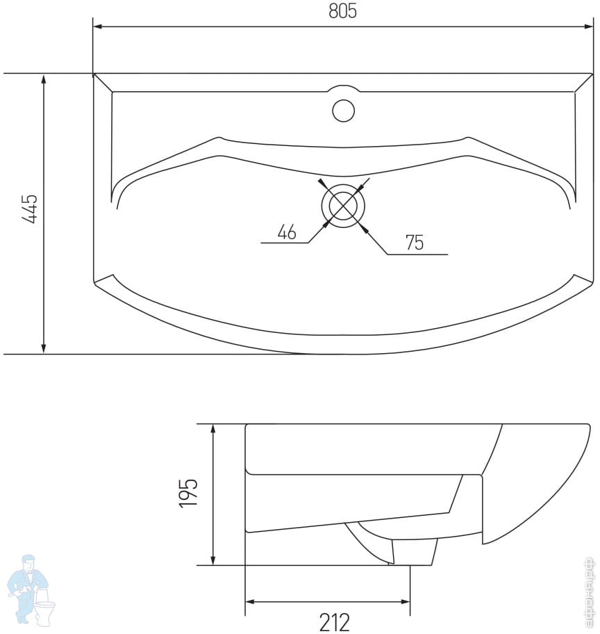 Раковина Aquaton Беверли 80 1WH302422 800x480x165 мм, перелив, отверстие под смеситель, белый фарфорКод: 161136