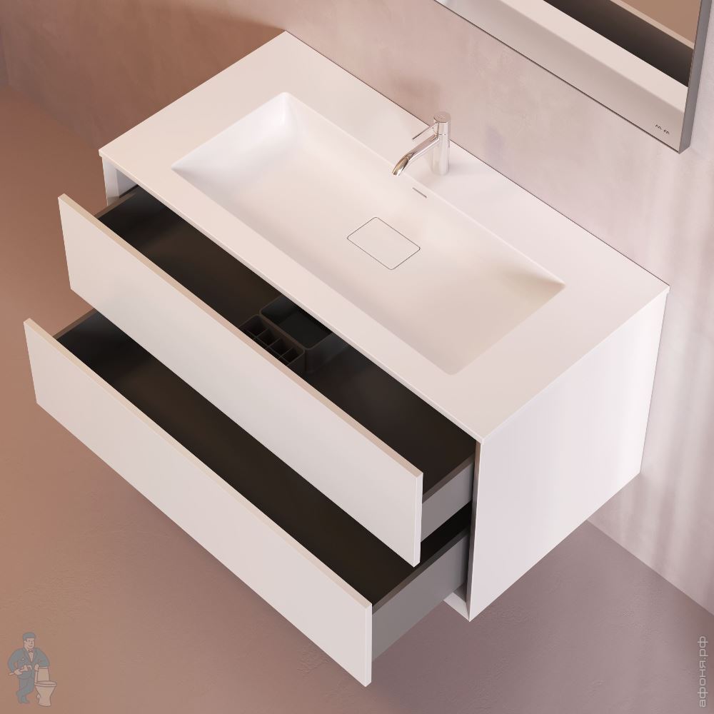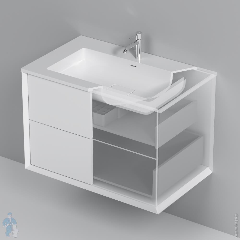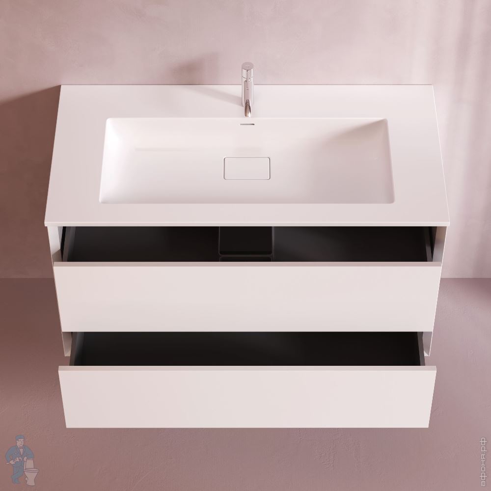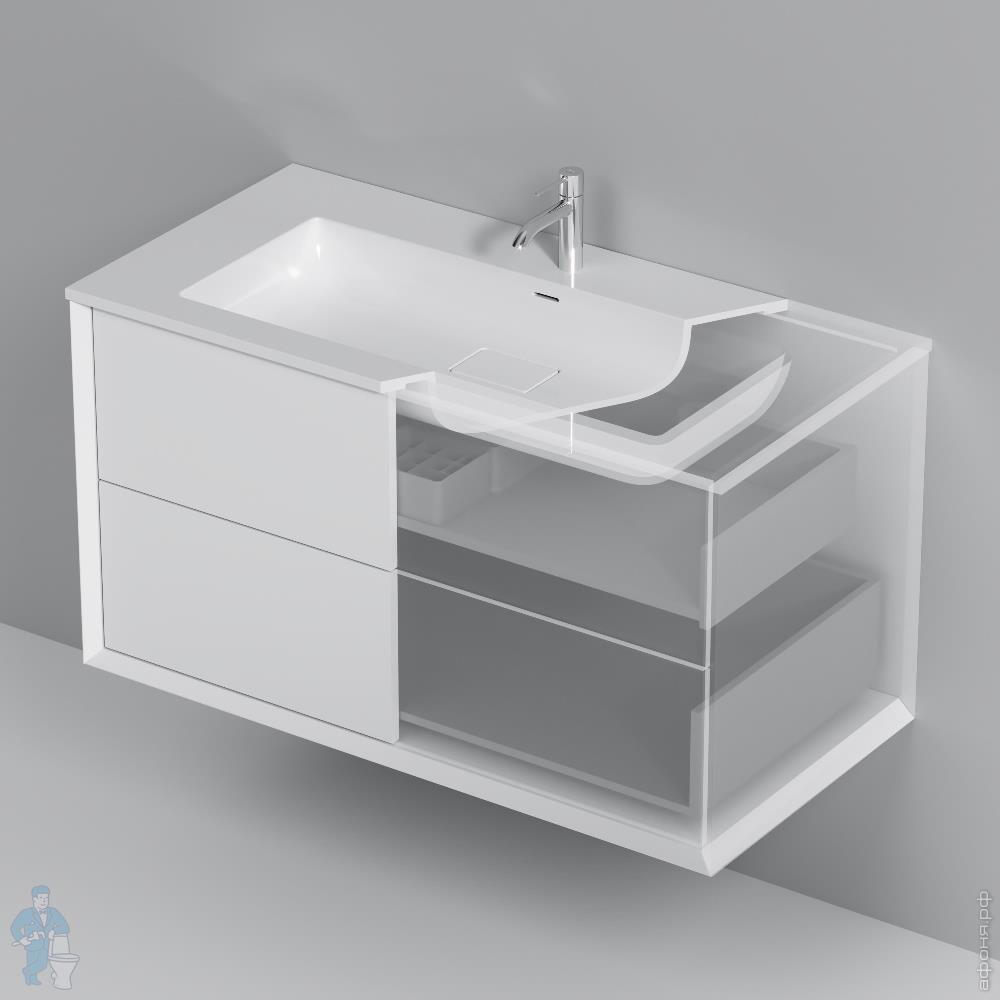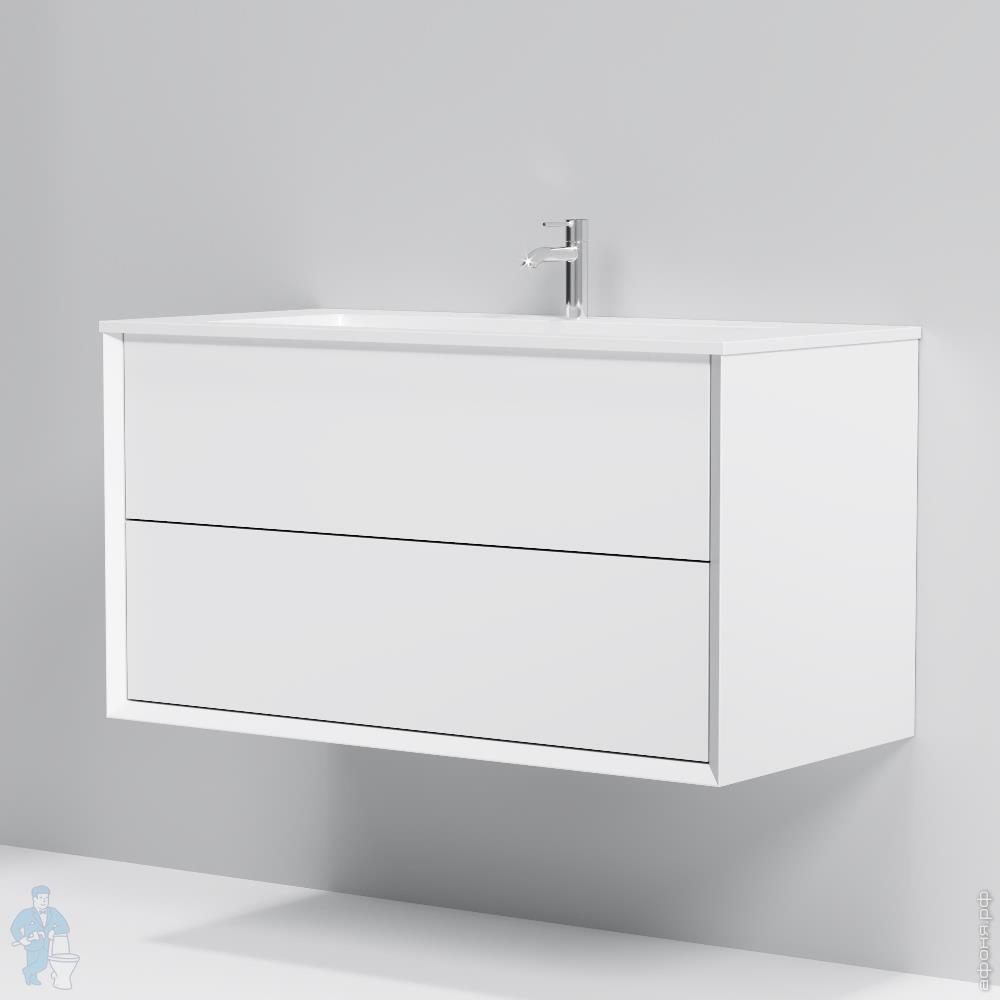 Тумба с раковиной AM.PM Libre подвесная 490х1010х548, 2 ящика, белая матовая M60-FHX1002WM-WPC100SWMКод: 380034