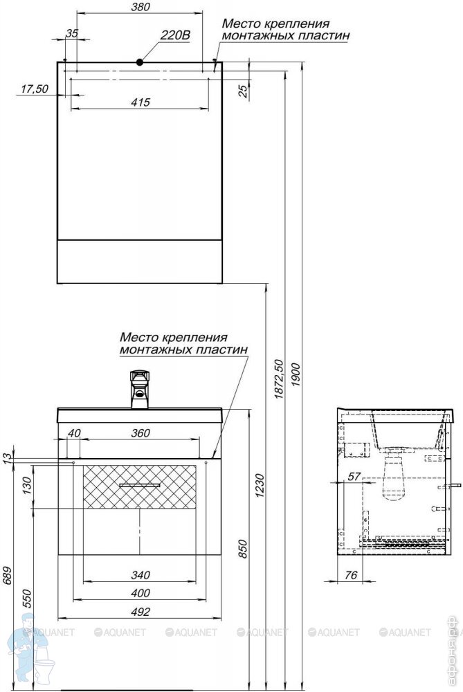 Мебель для ванной комнаты AQUANET Standart: Нота 40/50/58/75/90/100