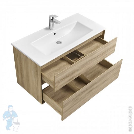 Тумба под раковину AQUATON Либерти 90 1A279901LYC70 882х430х390 подвесная, 1 ящ., дуб эльвезия/белыйКод: 303549