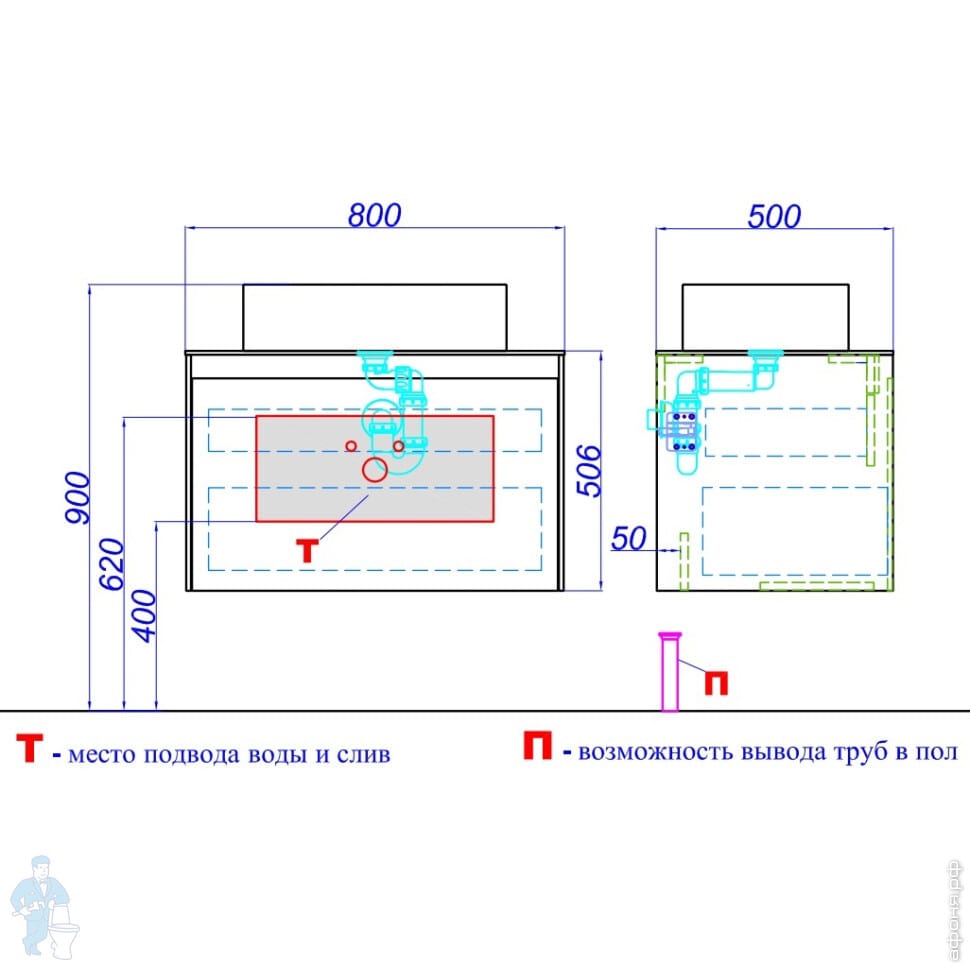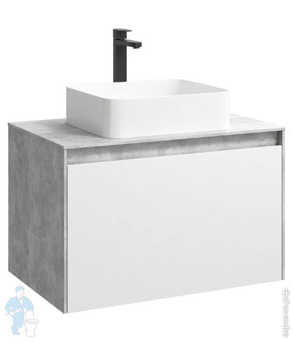 Тумба под умывальник Aqwella Mobi 800x650x500 подвесн., 2 ящ., бетон свет./белый. MOB0108BS+MOB0708WКод: 300200