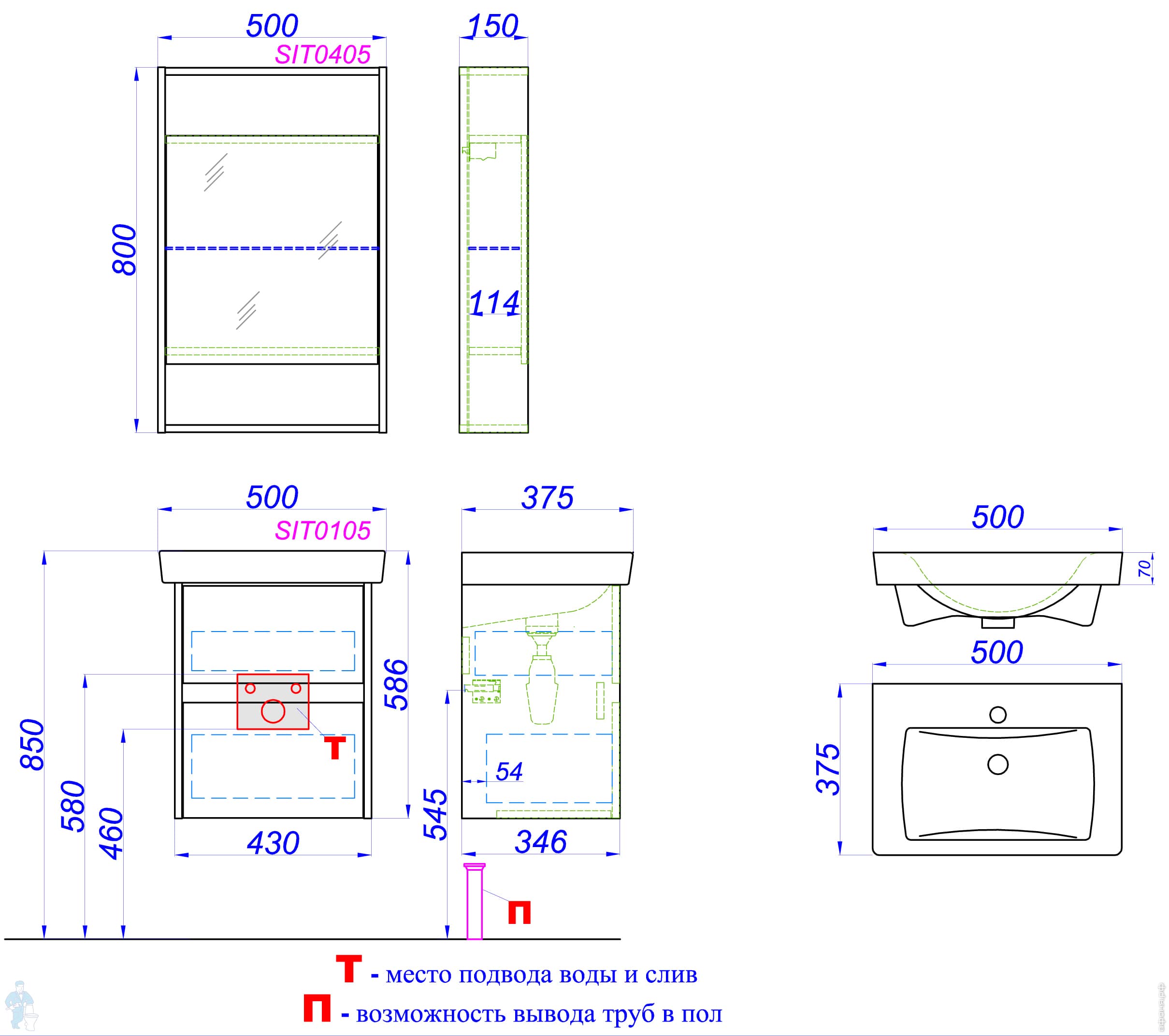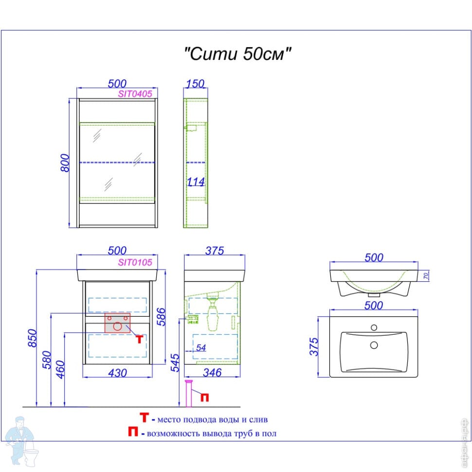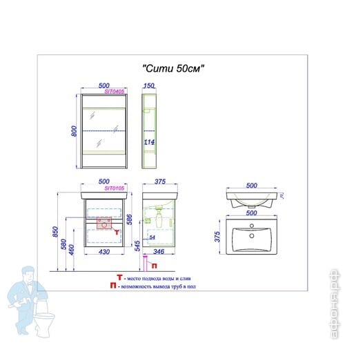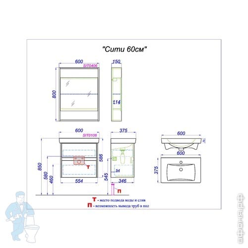 Мебель для ванной комнаты AQWELLA: СИТИ 50/60