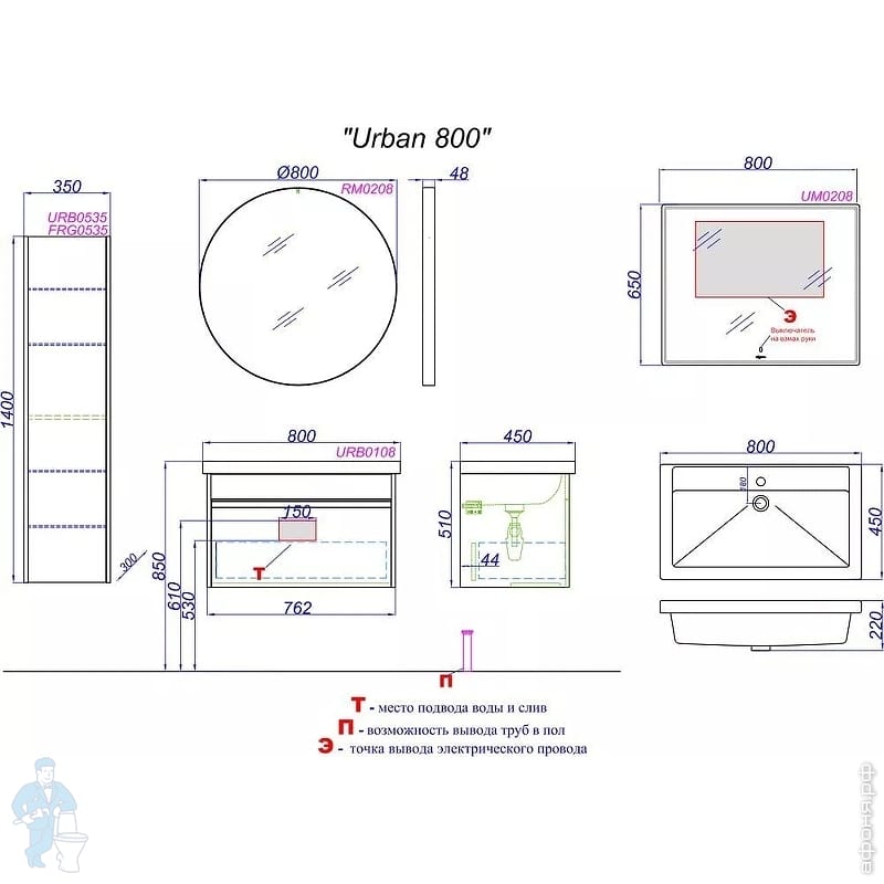 Мебель для ванной комнаты AQWELLA: УРБАН