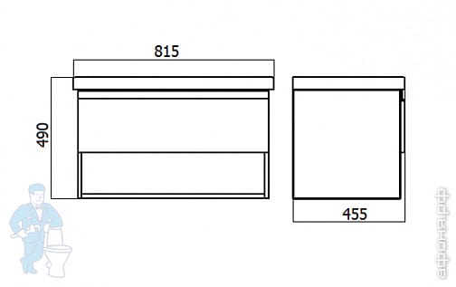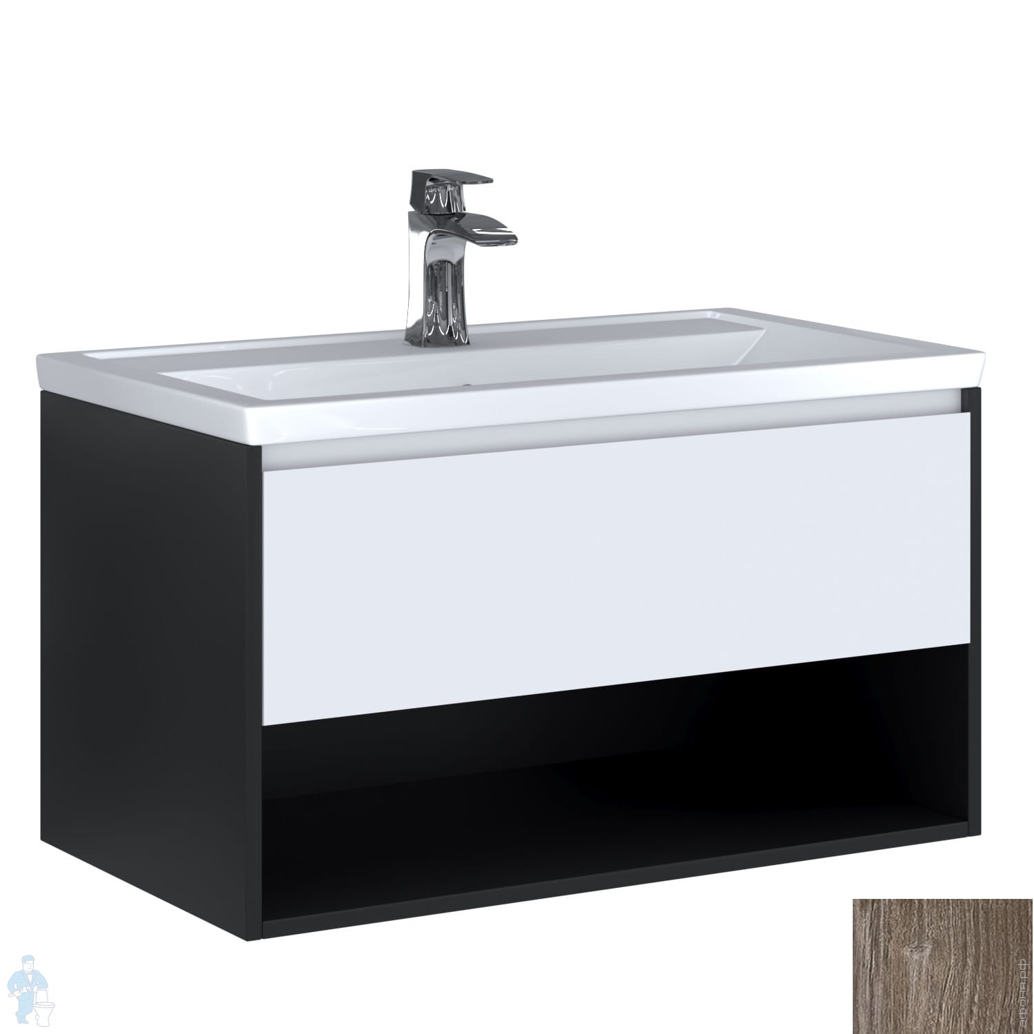 Тумба с раковиной BAND HOURS Bellona (815х455х490) 1 ящик, с подсветкой, черный мат./белый Bel800 91Код: 168564