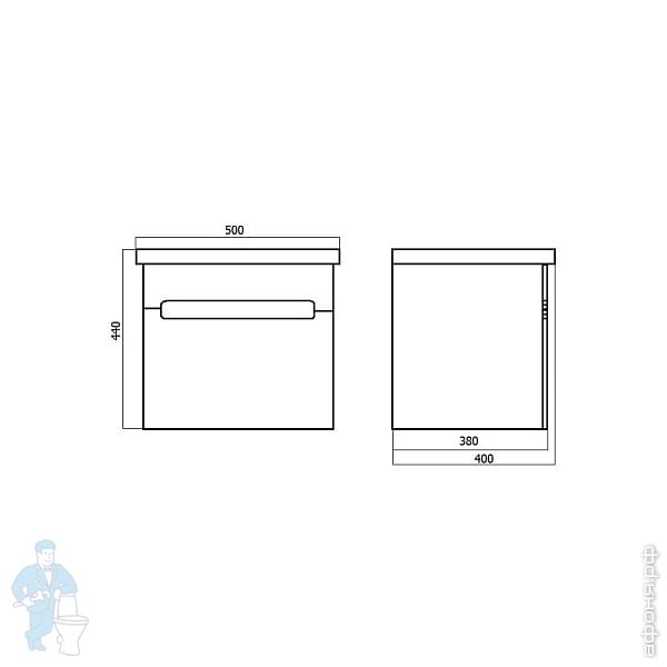 Тумба с раковиной BAND HOURS Elba (500х400х840) напольная, петли справа, белый глянец/дуб Elb500.92RКод: 169560