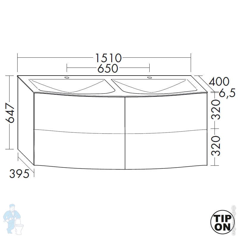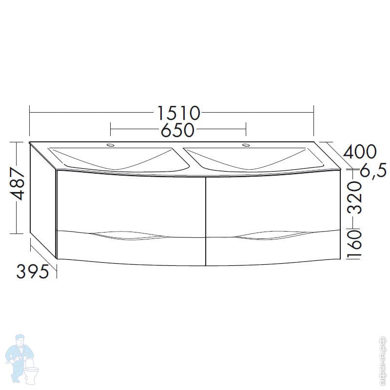 Тумба с двойной раковиной Burgbad Sinea 2.0 1510х487х400 подв., 4 ящ, белый глянец SFFQ151F2800G0166Код: 277902