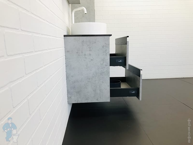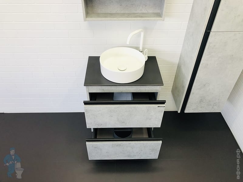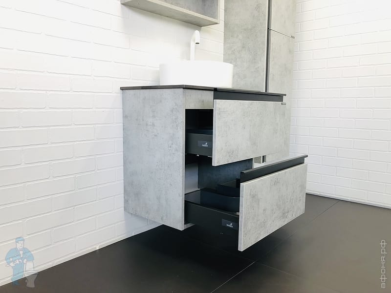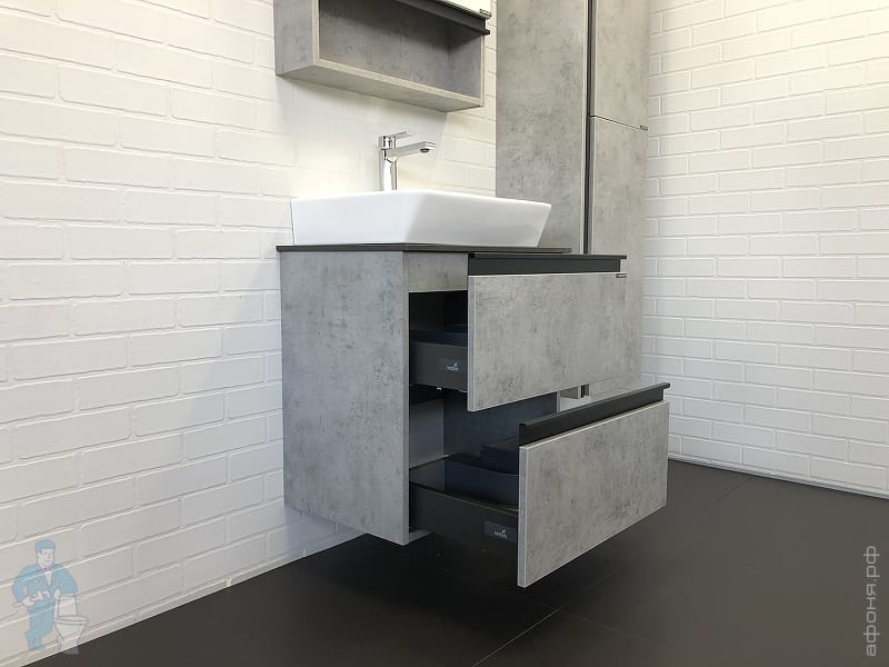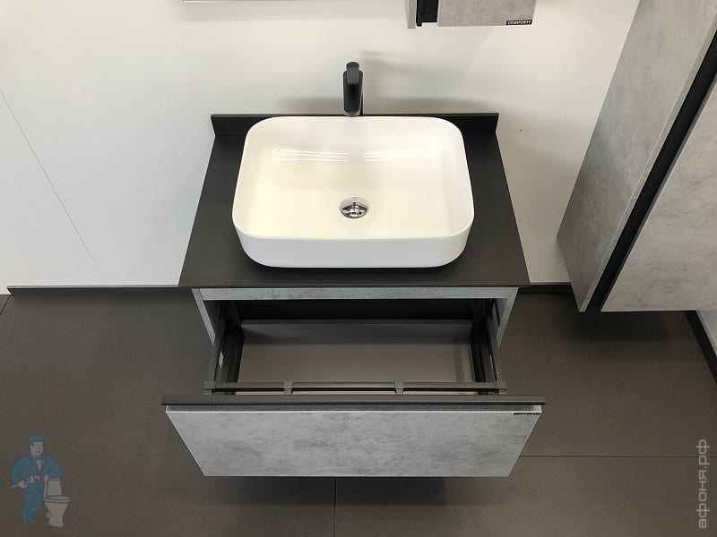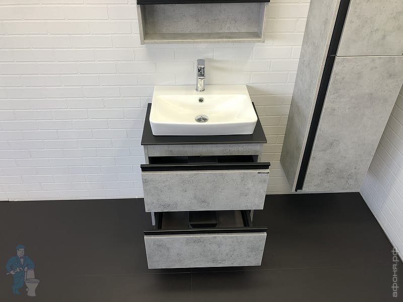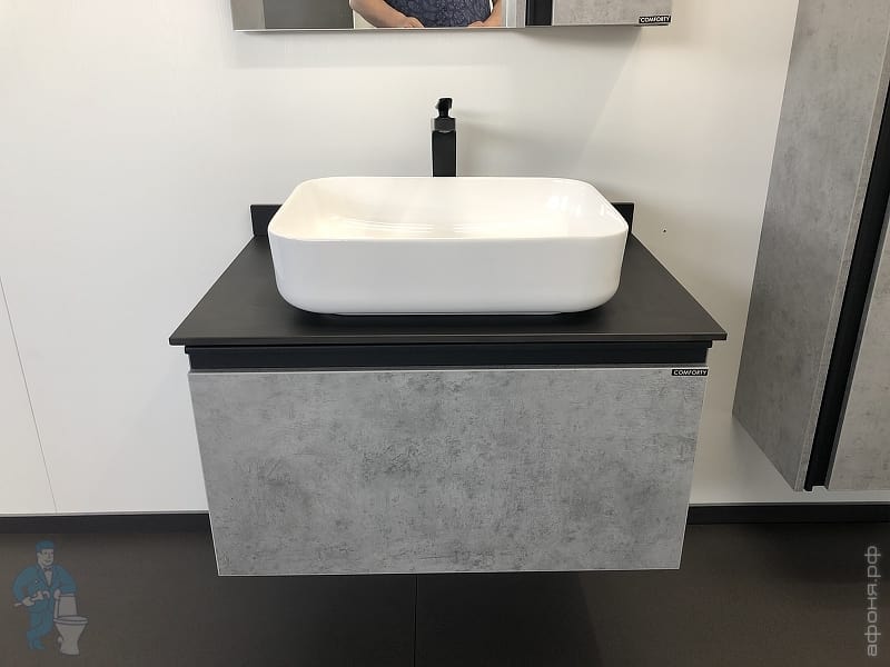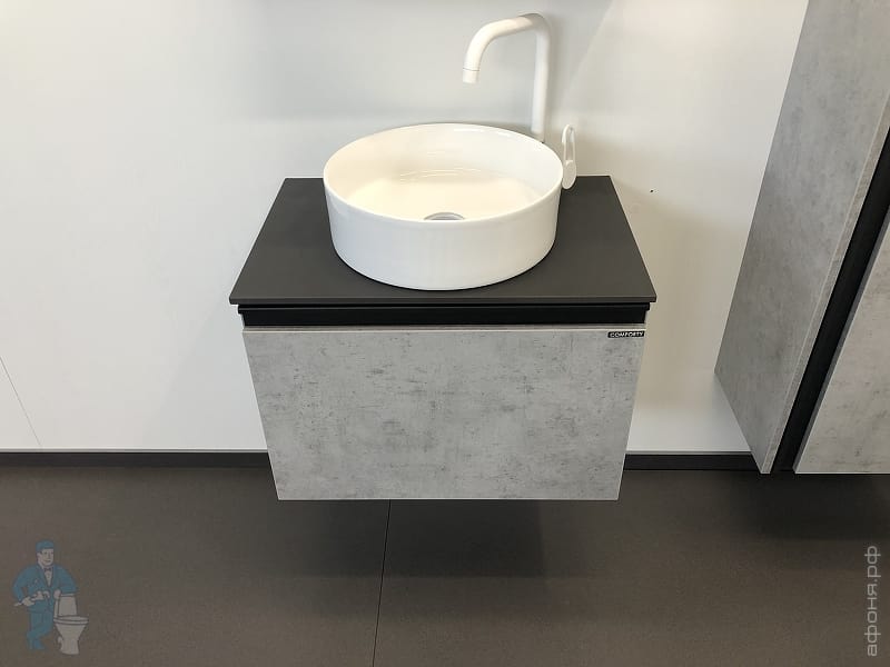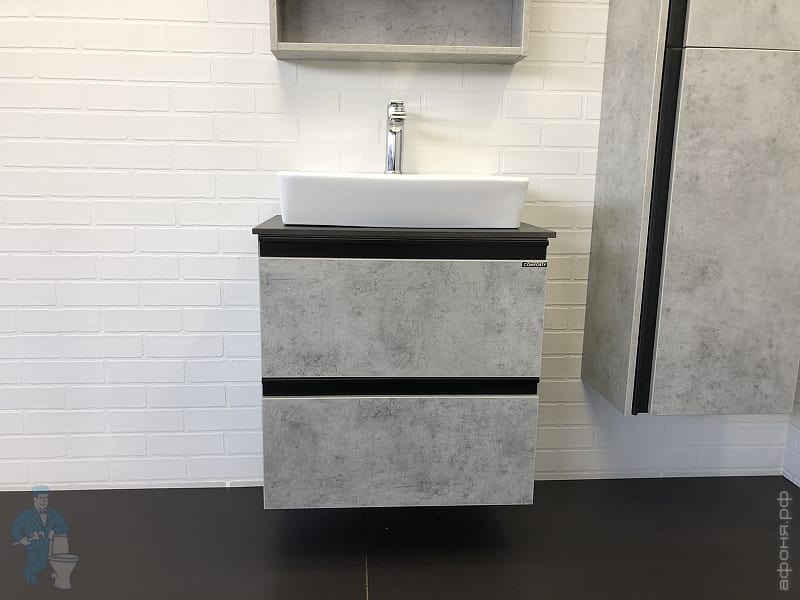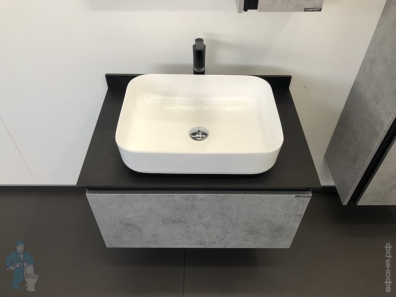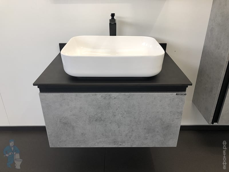 Тумба COMFORTY Эдинбург-60 (600х525х400) подвесная, с раковиной и столеш., бетон светлый 00-00002782Код: 291842