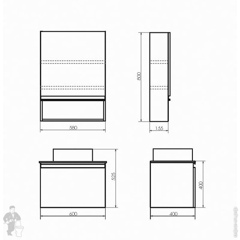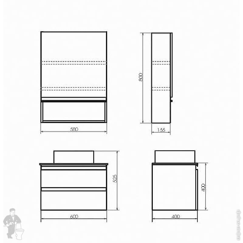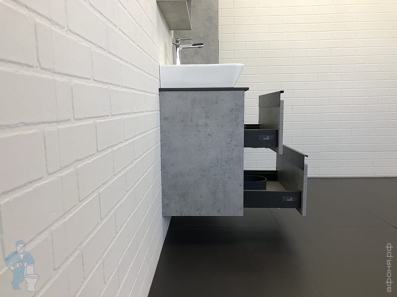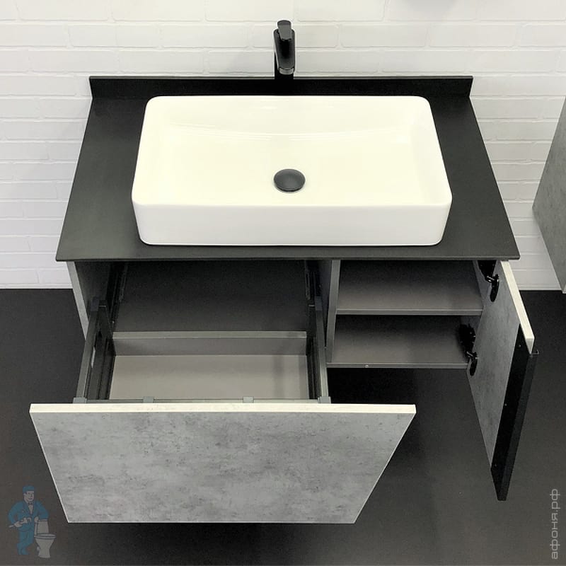 Тумба COMFORTY Эдинбург-60 (600х525х400) подвесная, с раковиной и столеш., бетон светлый 00-00001928Код: 291841