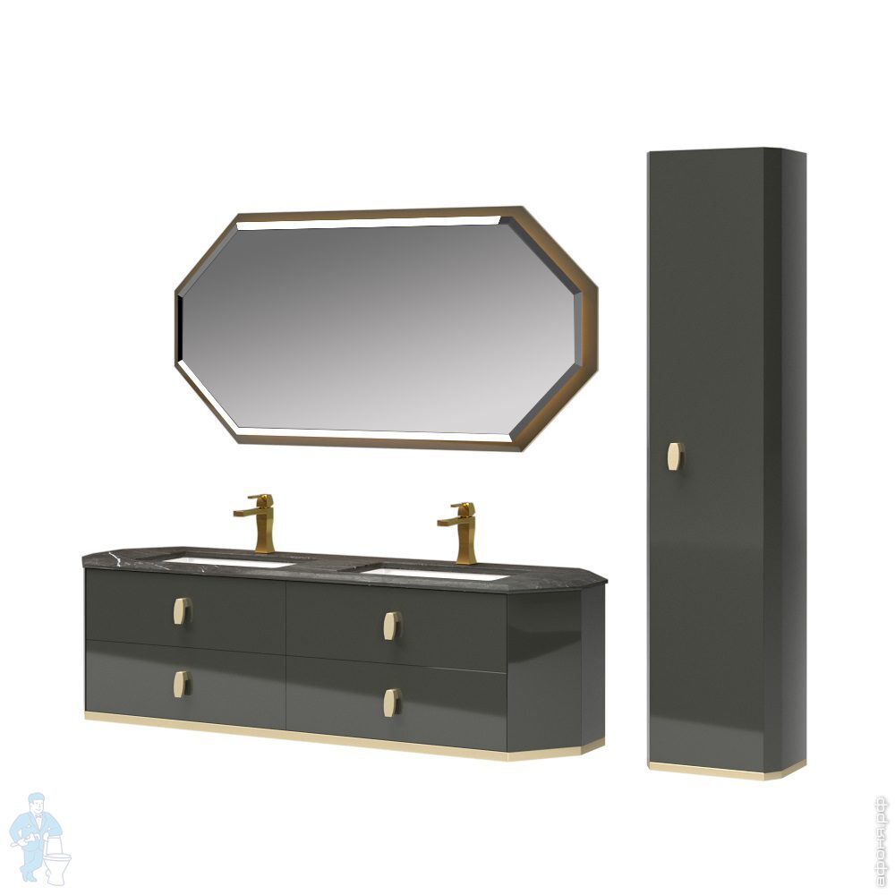 Пенал подвесной Diamante Zaffiro ZAFARM 1 ORO Brash SX 1700х400х300 левый, Smoke глянец /мат. золотоКод: 223143