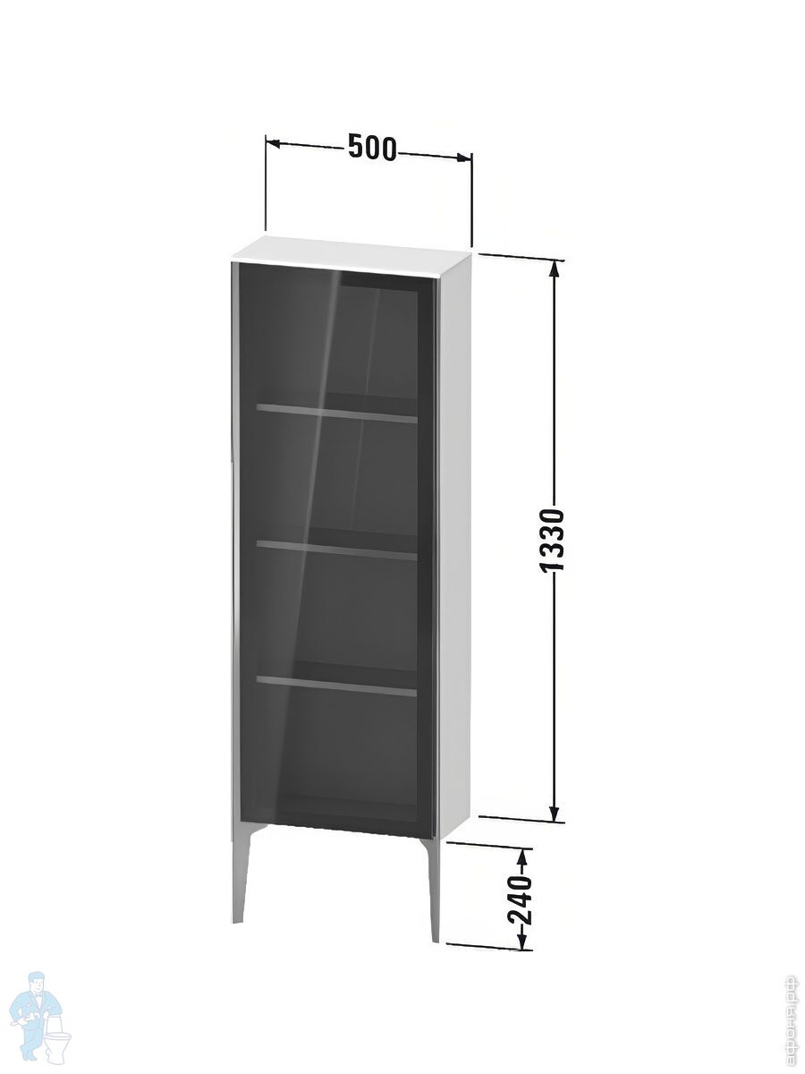 Шкаф напольный Duravit XViu 400х1330х360 петли справа, стекло мат./фланелево-сер/шампань XV1367RB190Код: 211564