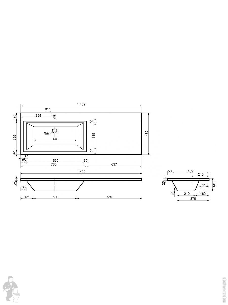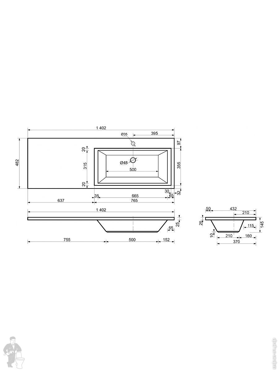 Тумба со столешницей Estet Dallas 1400х482 к стиральной машине, напольная, 2 ящ., правая ФР-00002907Код: 297598