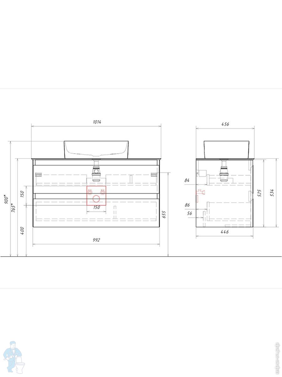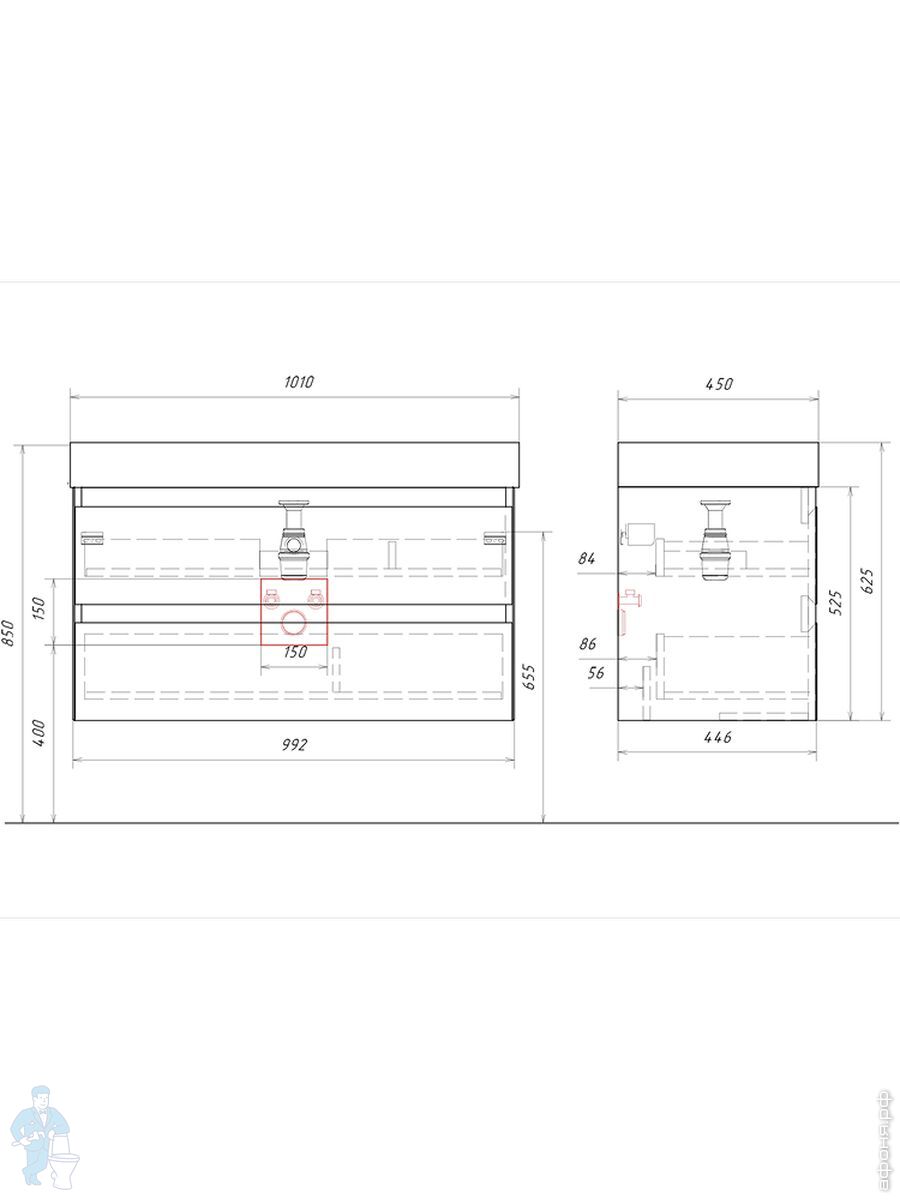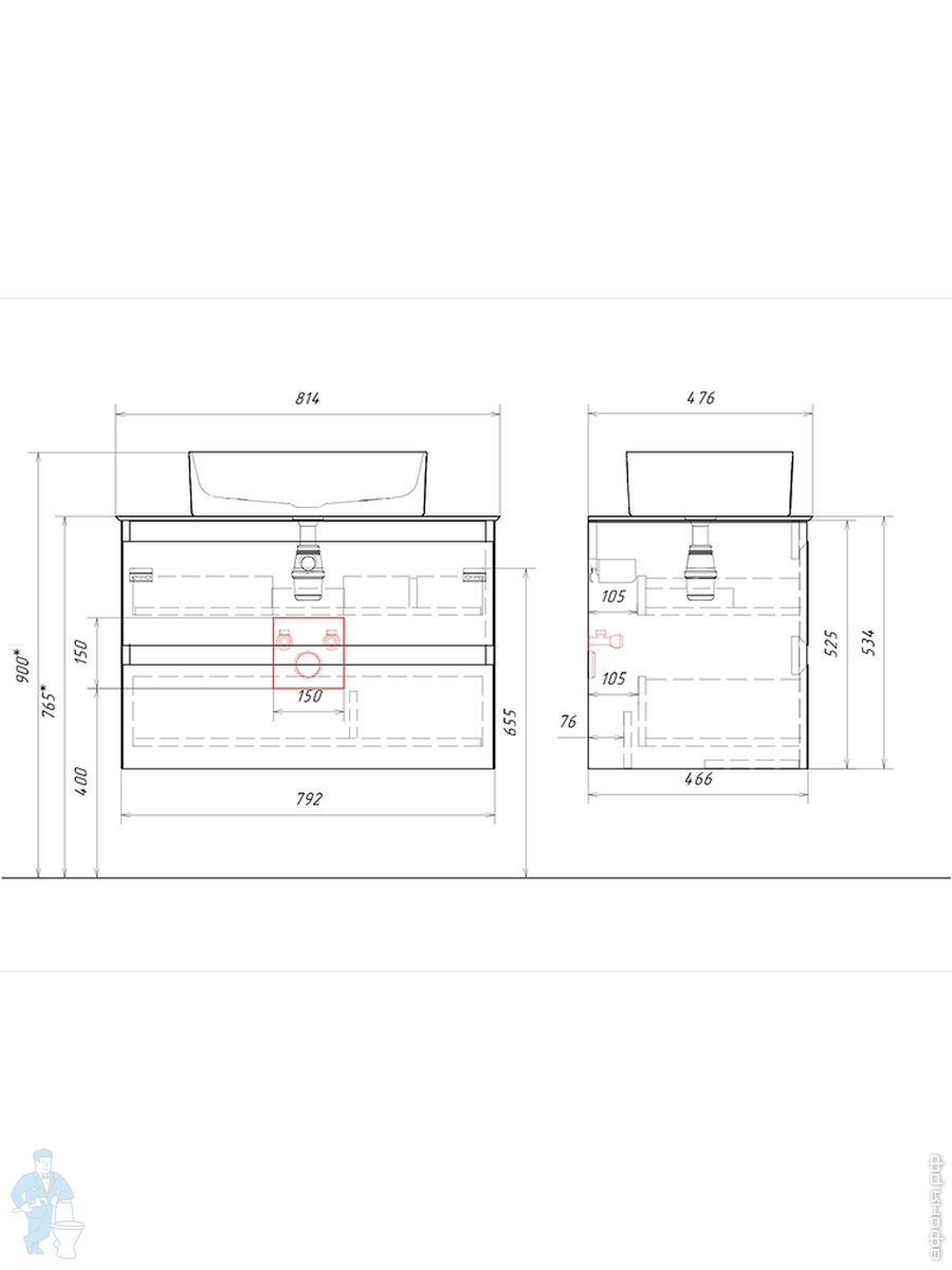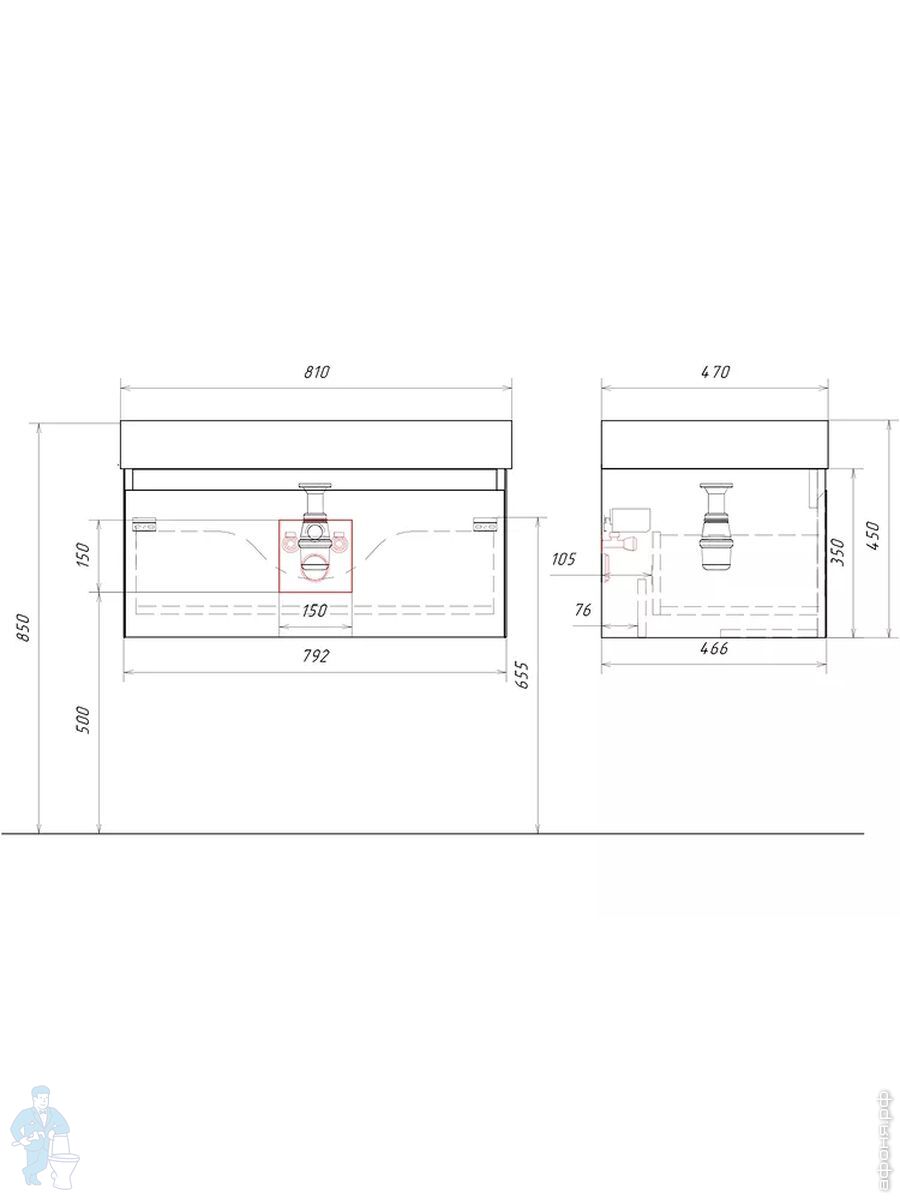 Мебель для ванной комнаты AQWELLA: Тумбы под умывальник из коллекции Geometria