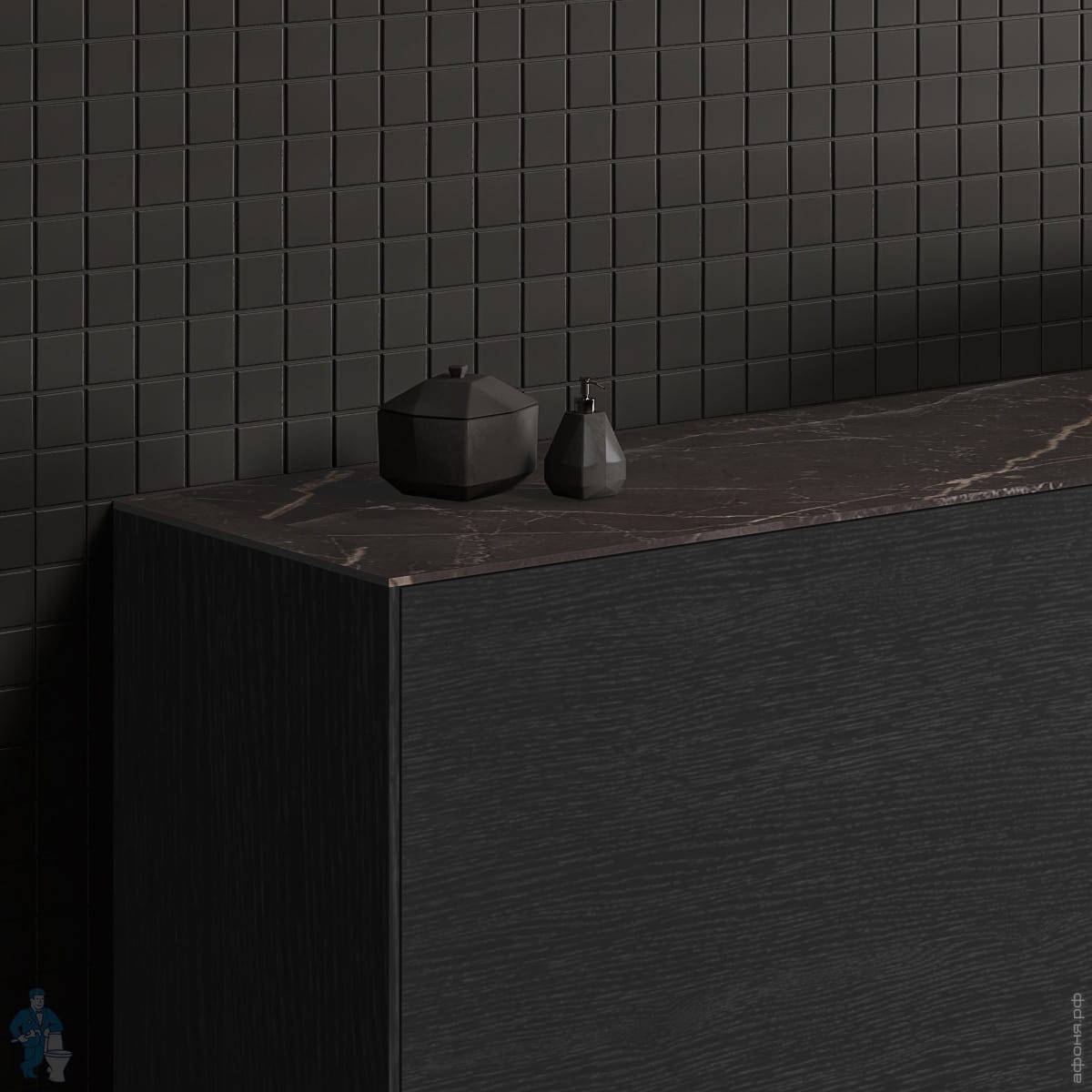 Столешница для тумбы 240 Ideal Standard CONCA (2385x505x6) керамическая, black desire marble T4343DGКод: 189140