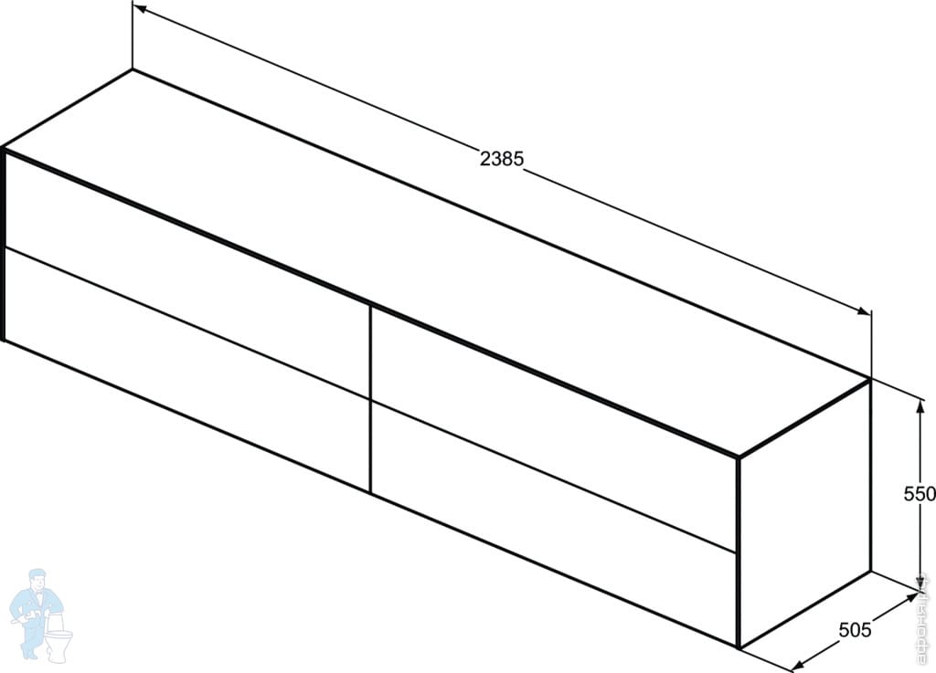 Тумба под раковину Ideal Standard CONCA (2385x505x550) 4 ящика, светлый орех, со столешницей T4338Y6Код: 188289