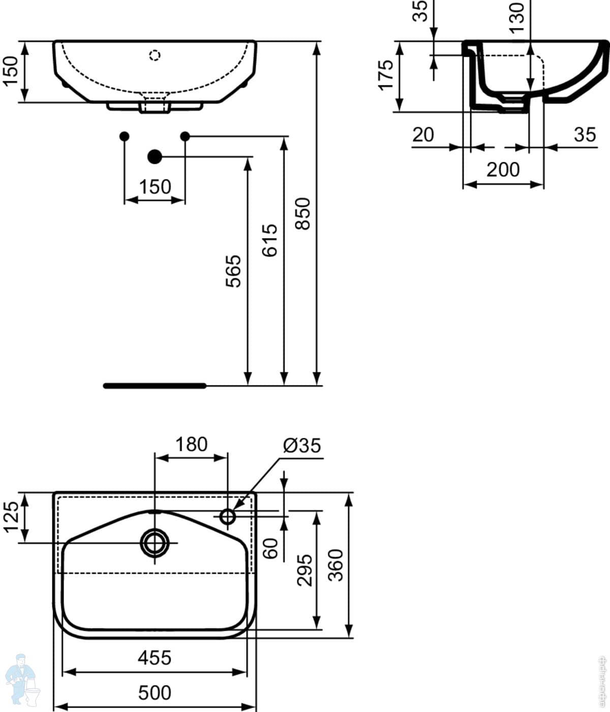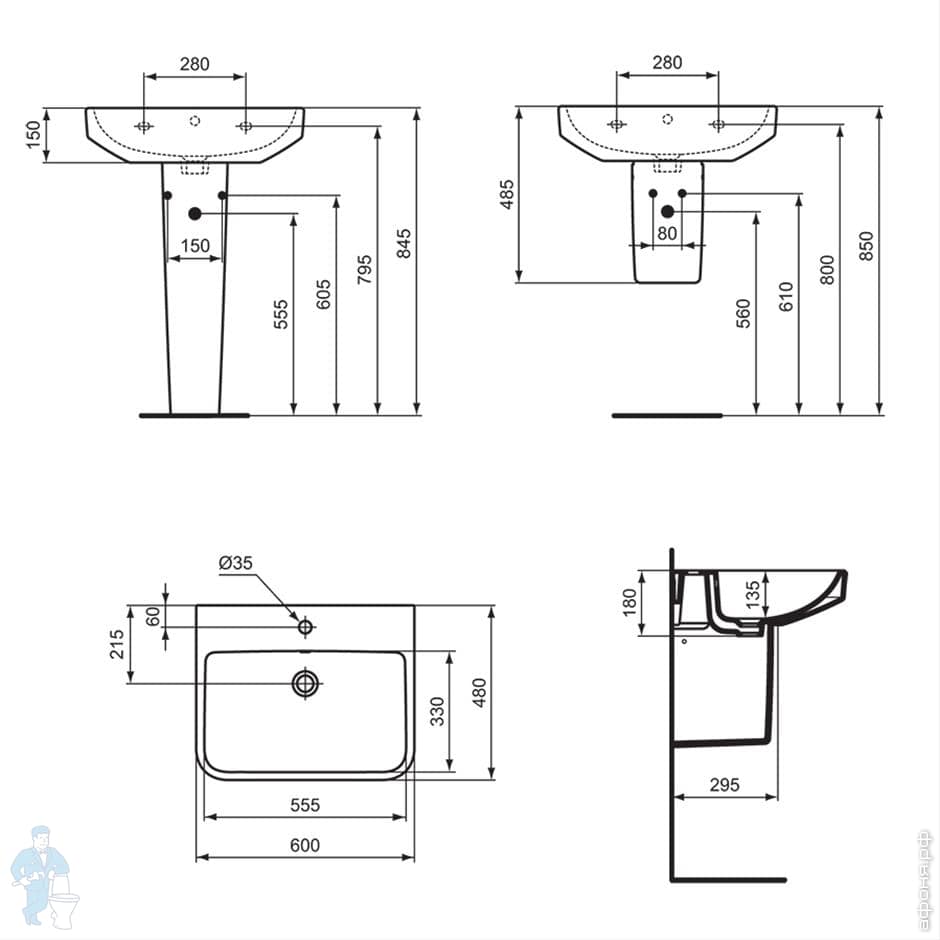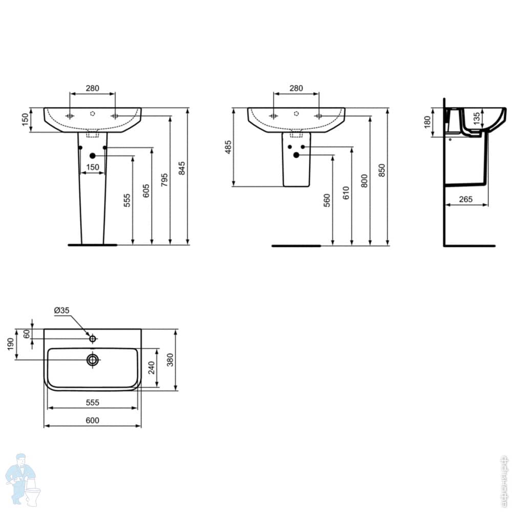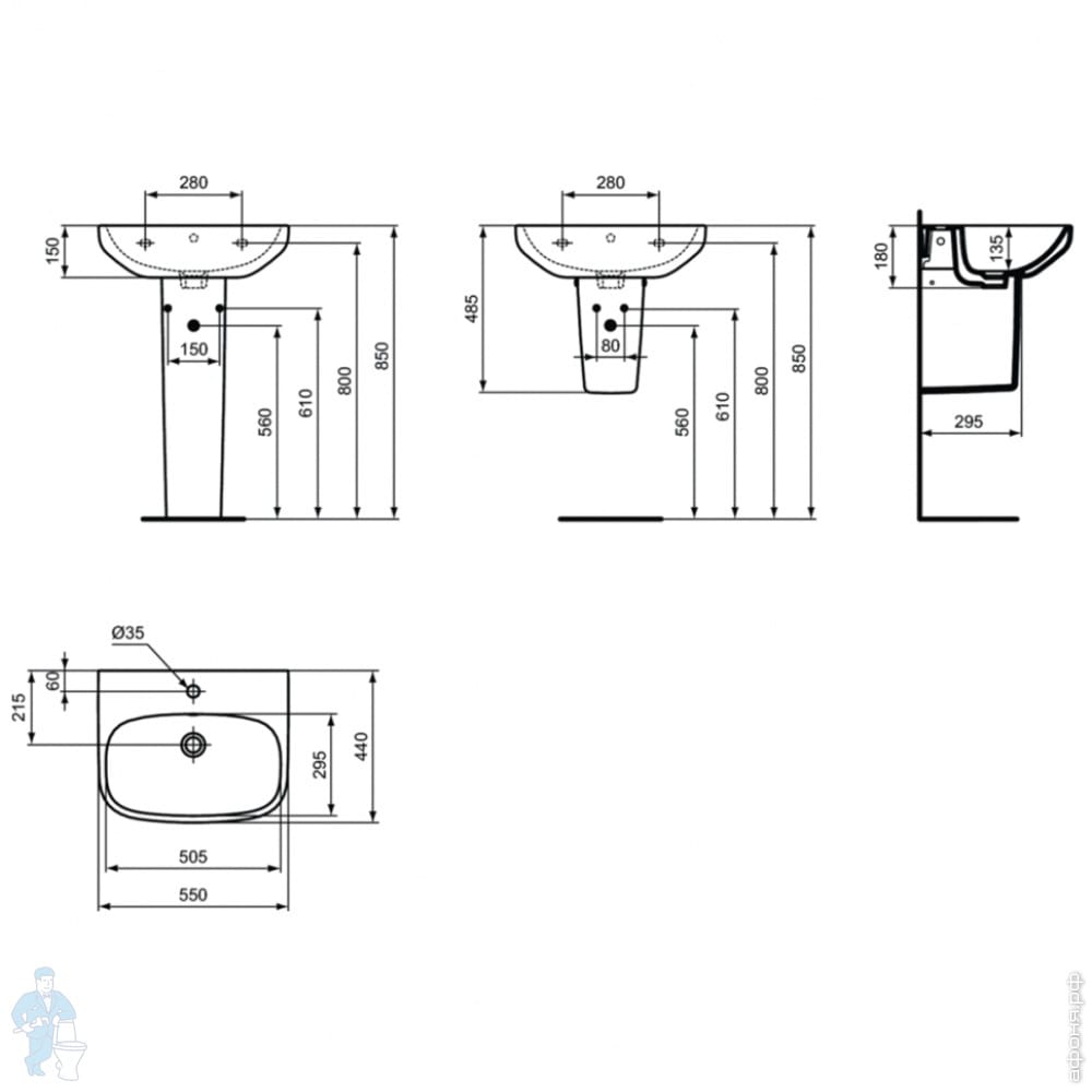 Умывальник накладной Ideal Standard i life B 1200х510х135 2 чаши, отв. под смесиель, перелив T460201Код: 283504