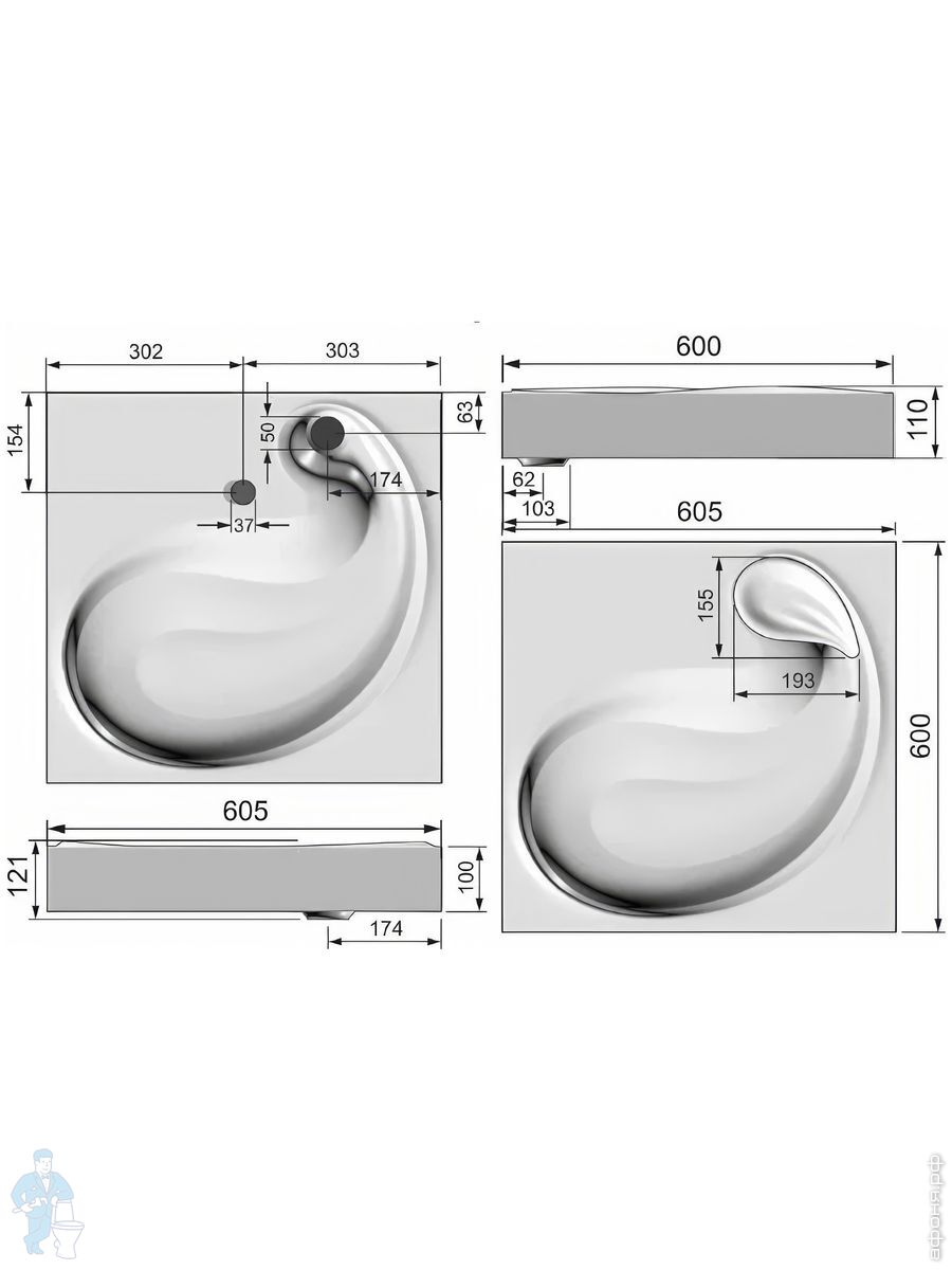 Раковина мебельная Melana 510х400х140 накладная,без отверстия под смеситель,черный мат. MLN-320353MBКод: 314102