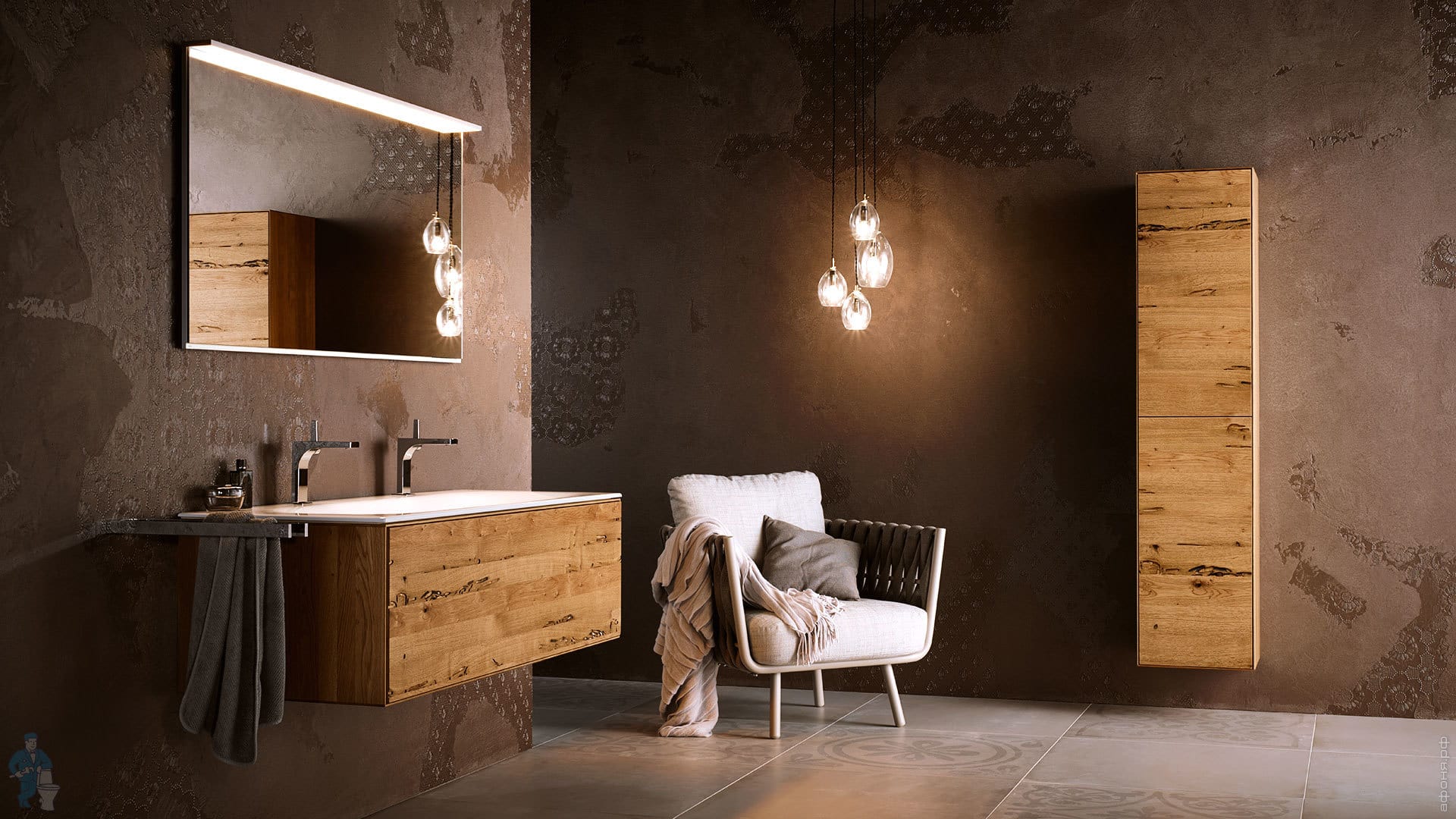 Тумба под раковину Keuco Edition Lignatur (1050х535х400) R подвесная, подсветка, дуб вен.33371750221Код: 183542